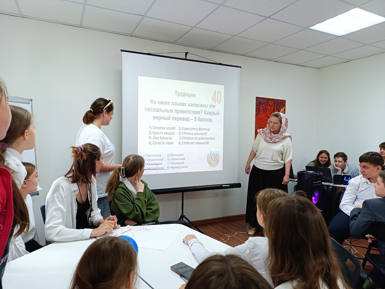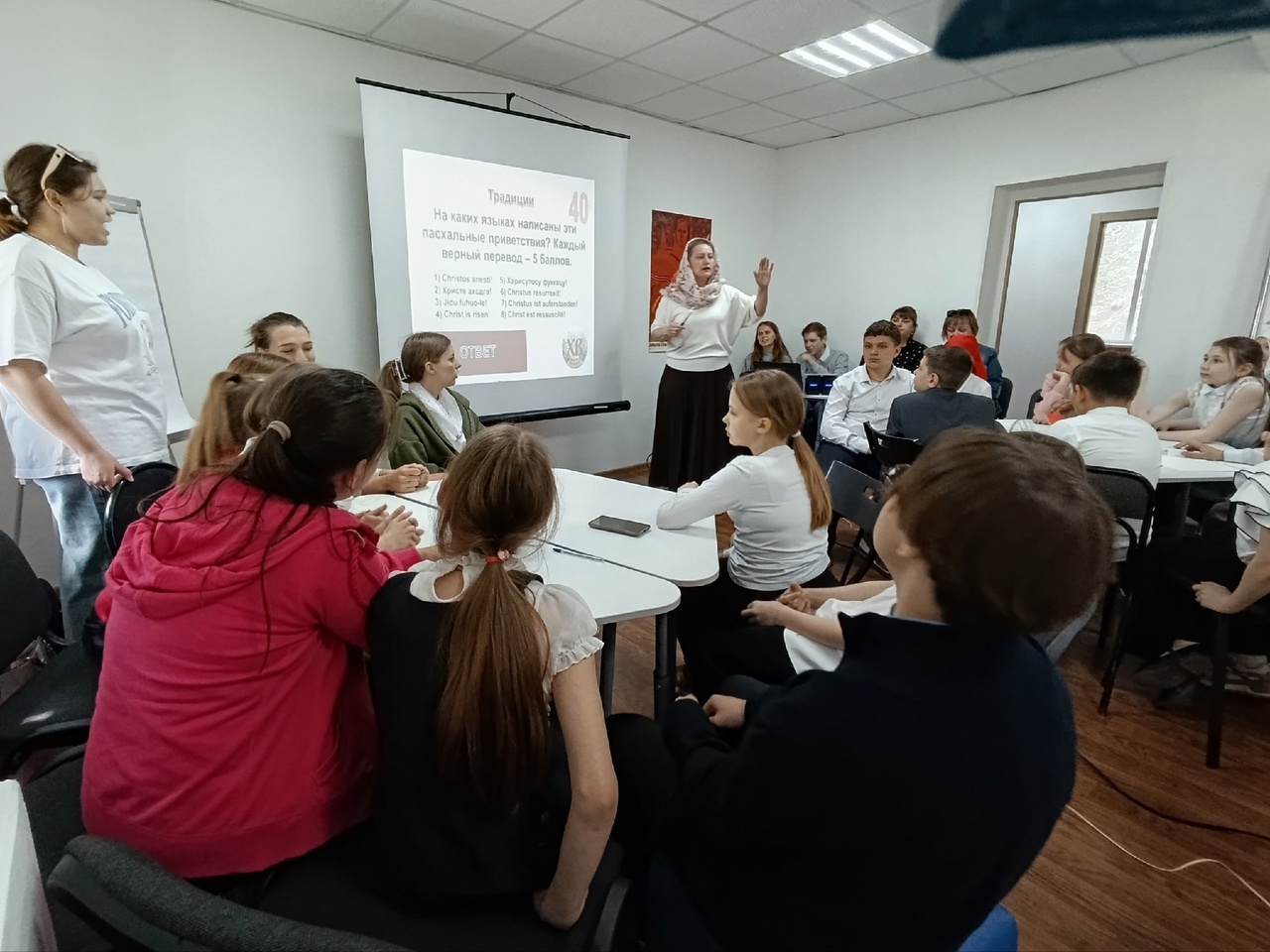 18 мая по благословению настоятеля Свято-Пантелеимоновского прихода города Гуково, иерея Леонида Зацепилина, ученики воскресной школы совместно с преподавателями приняли участие в Пасхальном квизе «Солнце правды», который состоялся в Добро-центре города Гуково.