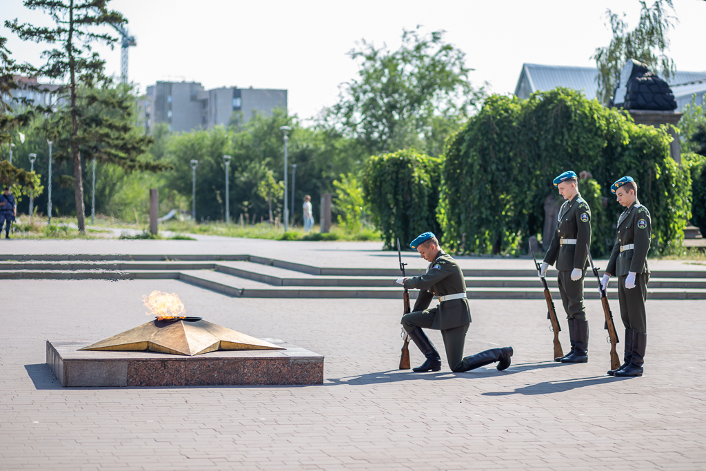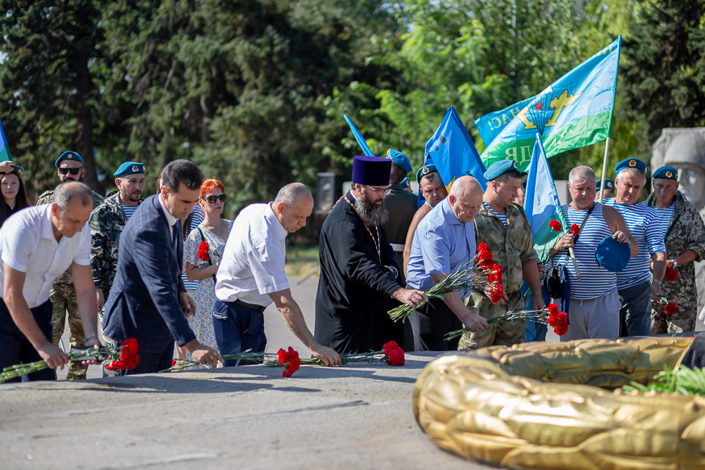 Участники мероприятия почтили память десантников, павших за свободу и независимость нашей Родины, минутой молчания и возложили цветы к воинскому мемориалу.