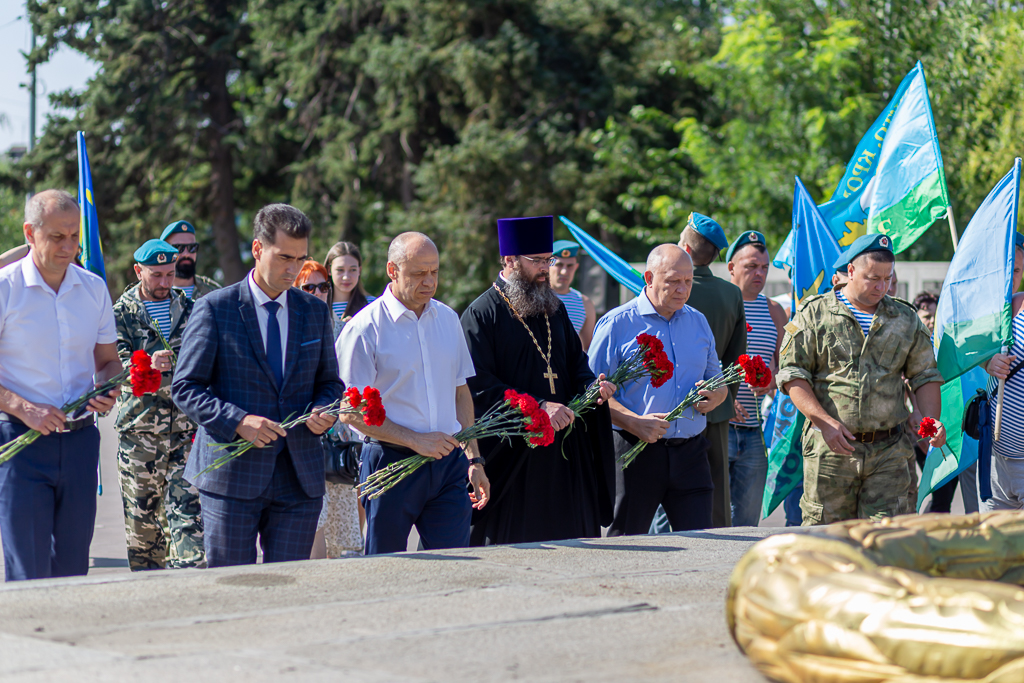 В праздничный для «крылатой пехоты» в Александровском парке города Шахты состоялось памятное мероприятие. Поздравили в этот день служивших в ВДВ и.о. первого заместителя главы Администрации г. Шахты Александр Байздренко, заместитель главы Администрации Александр Болтенков, председатель городской Думы города Шахты Константин Корнеев, председатель Общественной палаты города Шахты Александр Скориков, председатель Совета ветеранов города Шахты Александр Пятаков, благочинный приходов Александровск-Грушевского округа иерей Александр Теличкин.