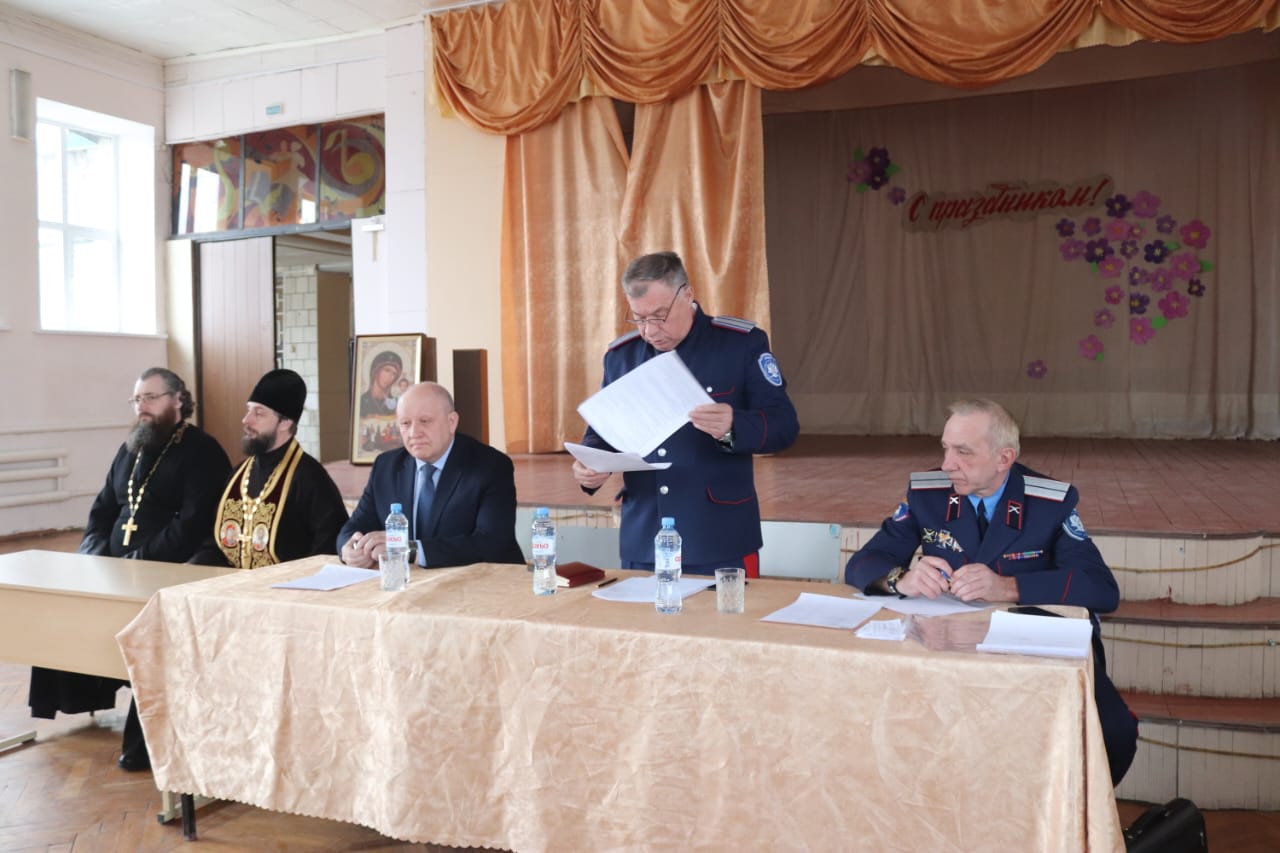 Перед началом Круга благочинный приходов Александровск-Грушевского округа протоиерей Сергей Яценко и руководитель отдела по взаимодействию с вооружеными силами и правоохранительными органами Шахтинской епархии иерей Алексей Скосарев совершили молитву о упокоении убиенных казаков в зоне специальной военной операции и по погибшим в результате террористического акта в концертном зале «Крокус Сити Холл».