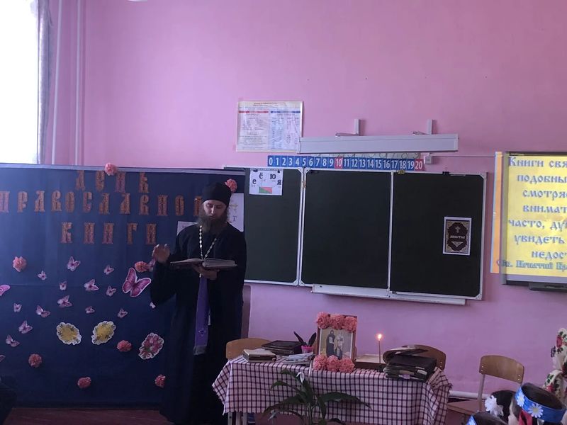 13 марта в МБОУ Дегтевская СОШ состоялась интересная встреча настоятеля храма Успения Пресвятой Богородицы ст. Мальчевской иерея Владимира Молородова с учениками начальных классов. Это мероприятие было посвящено особенной дате — Дню православной книги, которая ежегодно отмечается 14 марта.