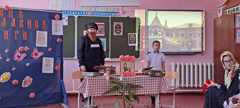 Отец Владимир подробно объяснил значение праздника, рассказав историю появления первой книги на Руси и о великих просветителях славянских народов — святых равноапостольных Кирилле и Мефодии. Затем священник познакомил детей с старинными изданиями православных книг. Также объяснил назначение главных священных книг в храме — Евангелия и Апостола, которыми пользуются священнослужители во время богослужений. Дети смогли своими глазами увидеть древние тексты и даже попробовать читать некоторые отрывки на церковнославянском языке вместе со священником.