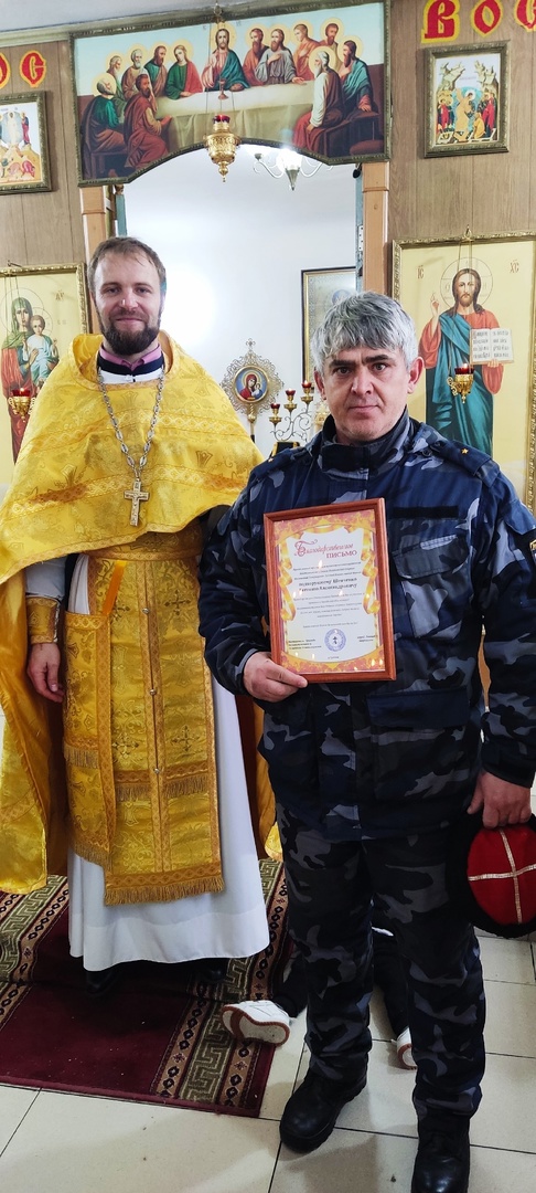 Иерей Леонид Зацепилин вручил благодарственные грамоты казакам Гуковского юрта