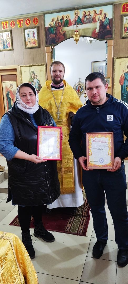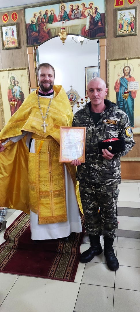 После Божественной литургии настоятель храма великомученика и целителя Пантелеимона иерей Леонид Зацепилин вручил благодарственные грамоты казакам Гуковского юрта Донецкого округа ДКВ РКОО за помощь и участие в проведении праздника «Масленица».