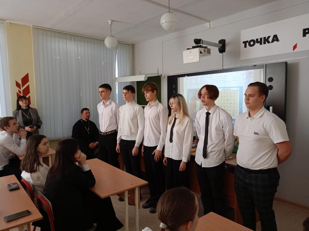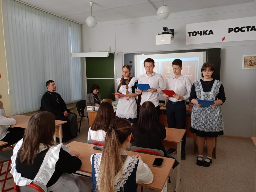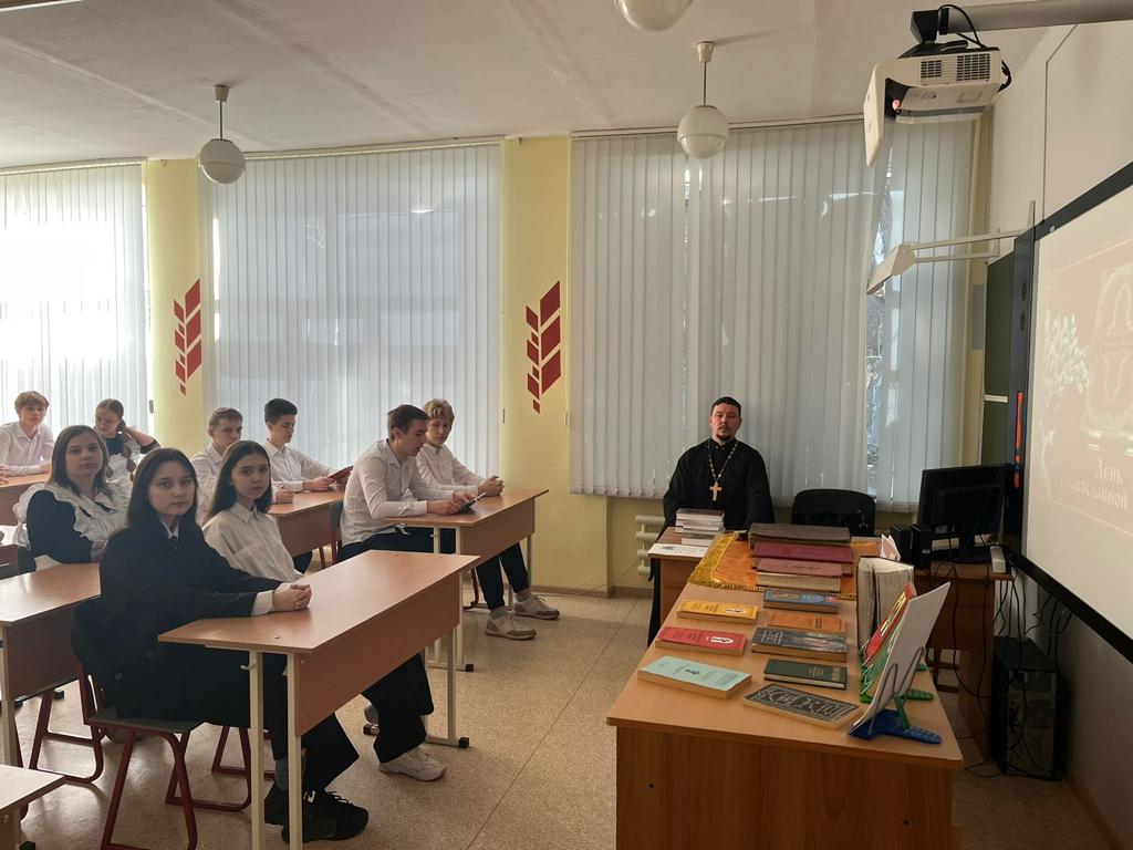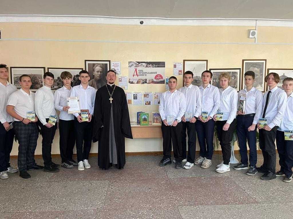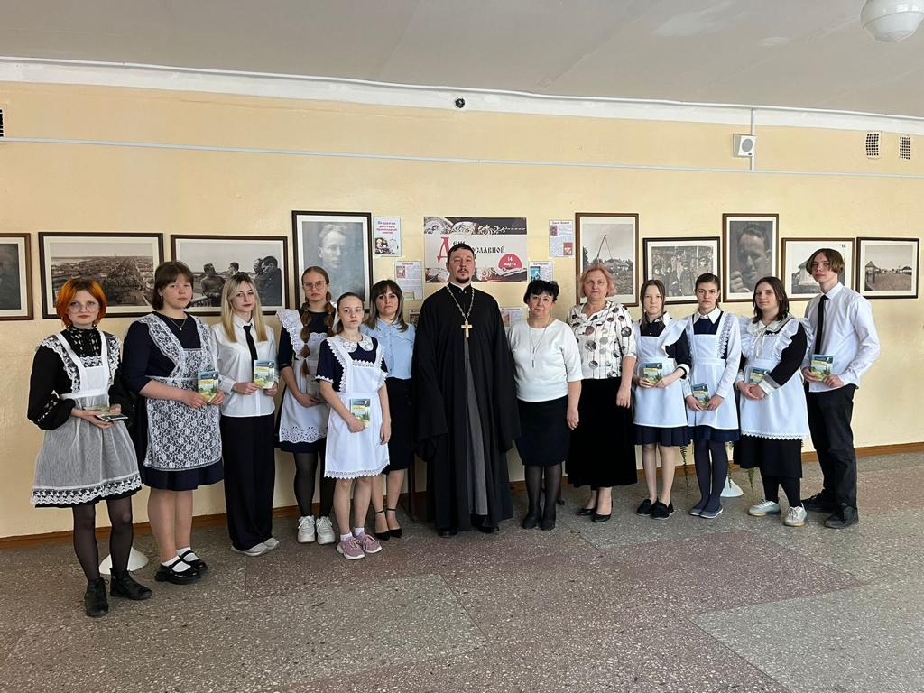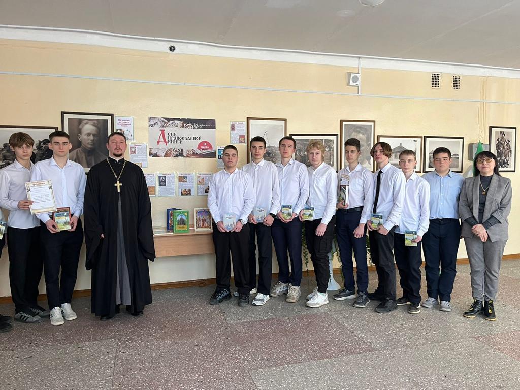 14 марта в рамках празднования Дня православной книги в МБОУ «Шолоховская гимназия» состоялась встреча благочинного Верхнедонского округа иерея Романа Митяшина с учащимися 10-а класса. В начале отец Роман представил учащимся книги: «Евангелие» 1805 года, «Апостол» и «Псалтирь» конца 19 века, рассказал о вере, духовных ценностях и самом главном законе духовного мира – заповеди любви, о ней говорил Христос, на ней основываются все пророки. Закон любви к Богу и к людям.