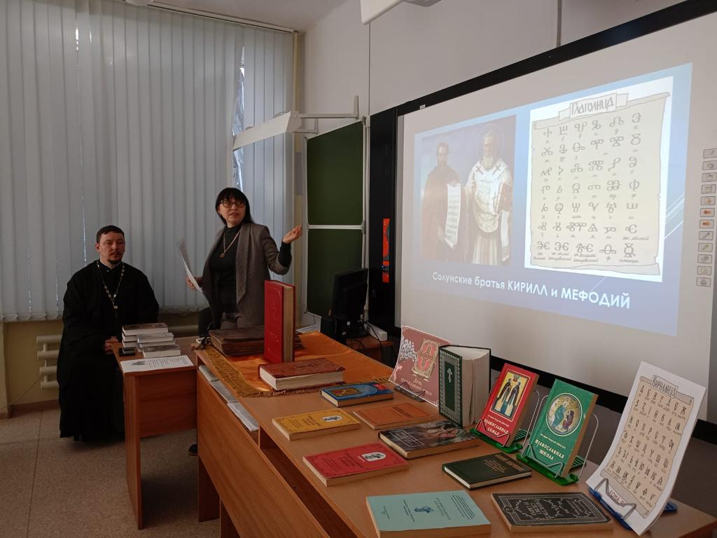 Главный библиограф Вешенской межпоселенческой центральной библиотеки Светлана Алексеевна Мельникова рассказала об истории возникновения праздника, появлении на Руси первой печатной книги «Апостол» и ее создателе – Иване Федорове, о событиях Священного писания, о великих православных праздниках. Ребята задавали интересующие их вопросы, активно участвовали в викторине. Каждый ученик получил в подарок от священника православную книгу.
