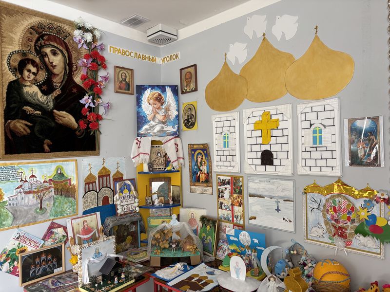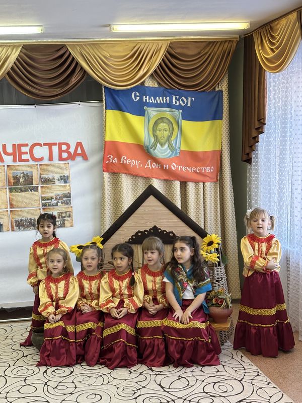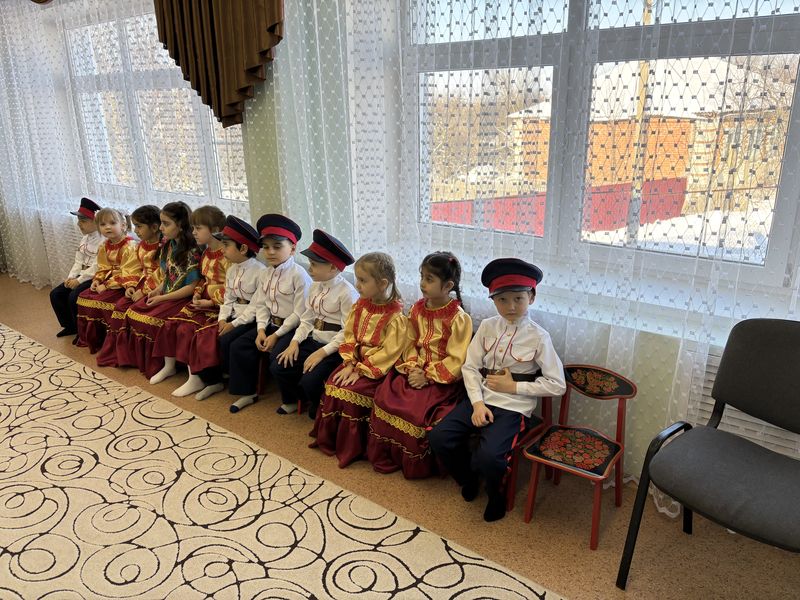 Воспитанники старшей группы прочитали стихи и исполнили казачью песню. Священник вместе с казачатами вспомнил двунадесятые и великие праздники января, повторил, как правильно совершать крестное знамение, и договорился с детьми о новой встрече в Ажиновском храме на богослужении.