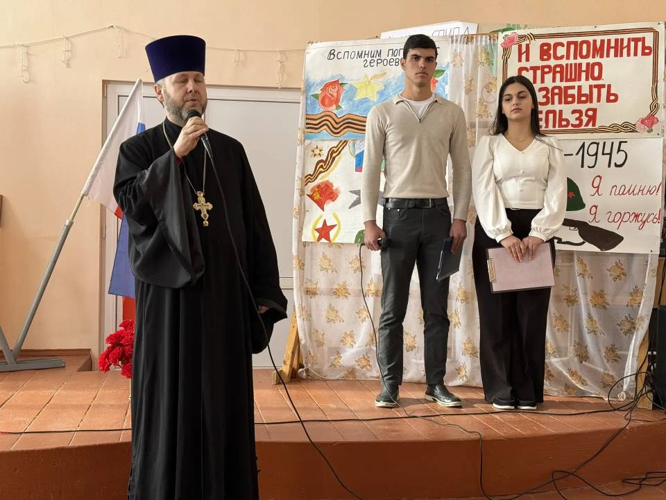 Благочинный Багаевского округа протоиерей Александр Маликов призвал взрослых уделять больше внимания духовно-нравственному и патриотическому воспитанию подрастающего поколения, напомнив слова Святейшего Патриарха Кирилла о «глубинной связи между просвещением и образованием». «Школа должна противостоять пропаганде чуждых нашей культуре идей и ценностей, которые способны разрушительно влиять на духовно-нравственные основы общества. Подвиг героев Великой Отечественной войны — пример для молодёжи», — отметил он.