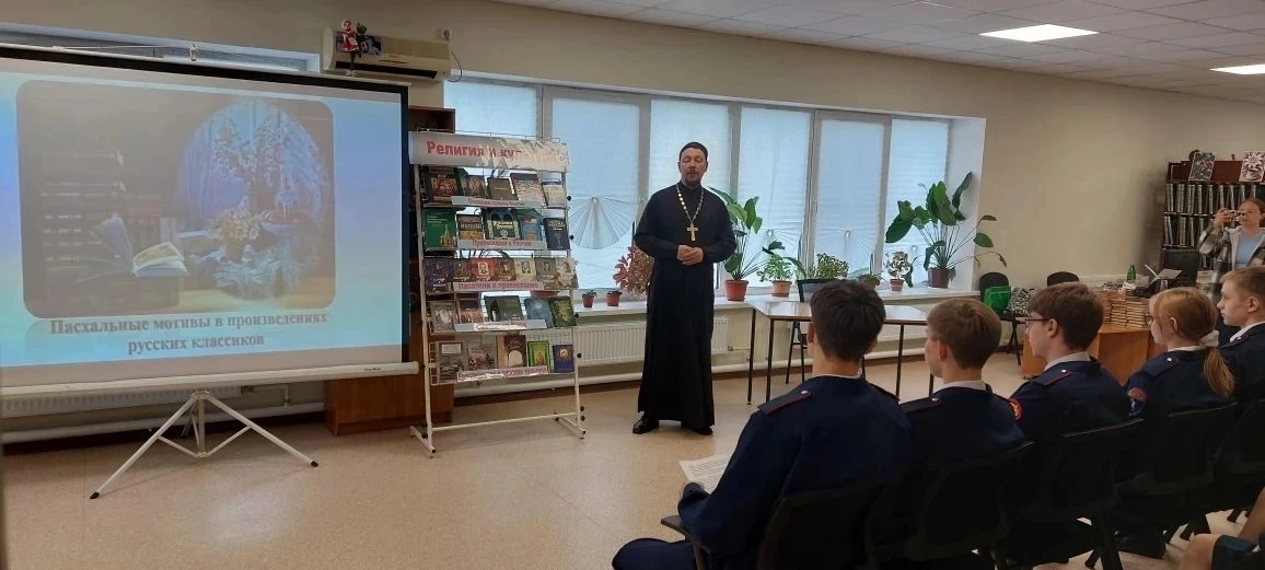 20 апреля 2026 года учащиеся 10 класса МБОУ «Шолоховская гимназия» приняли участие в мероприятии «Пасхальные мотивы в произведениях русских классиков», которое состоялось в МБУК «Вёшенская МЦБ». Ведущие Лаптева Е.А. и Мельникова С.А. рассказали о том, что Пасха занимала в творчестве русских писателей   Н.В. Гоголя, Ф. М. Достоевского, Н.С. Лескова, А. П.Чехова, А. И. Куприна, И. С. Шмелева особое место. Эта тема нашла отражение и в творчестве поэтов Аполлона Майкова, Сергея Есенина, Константина Бальмонта, Игоря Северянина.