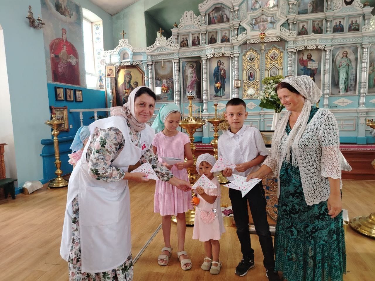 Воспитанники церковно-приходской воскресной школы "Благовест" храма Архистратига Михаила п. Каменоломни, через сестёр Марфо-Мариинского сестричества передали участникам специальной военной операции письма поддержки и детские рисунки.