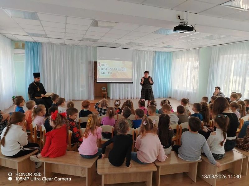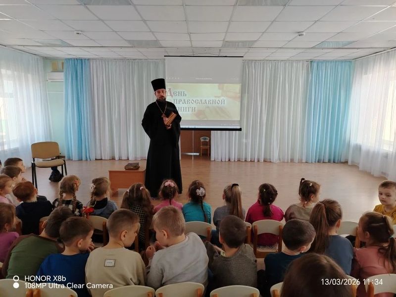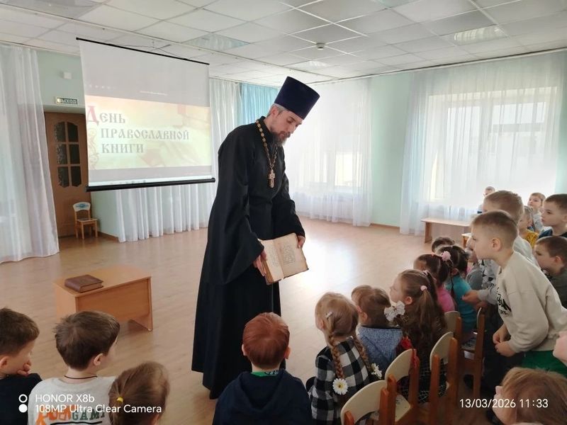 13 марта, в преддверии Дня православной книги, сотрудник библиотеки им. М.И. Платова Елена Владимировна Лопаткина и настоятель Свято-Никольского храма иерей Иоанн Трофимов посетили воспитанников МБДОУ №70.