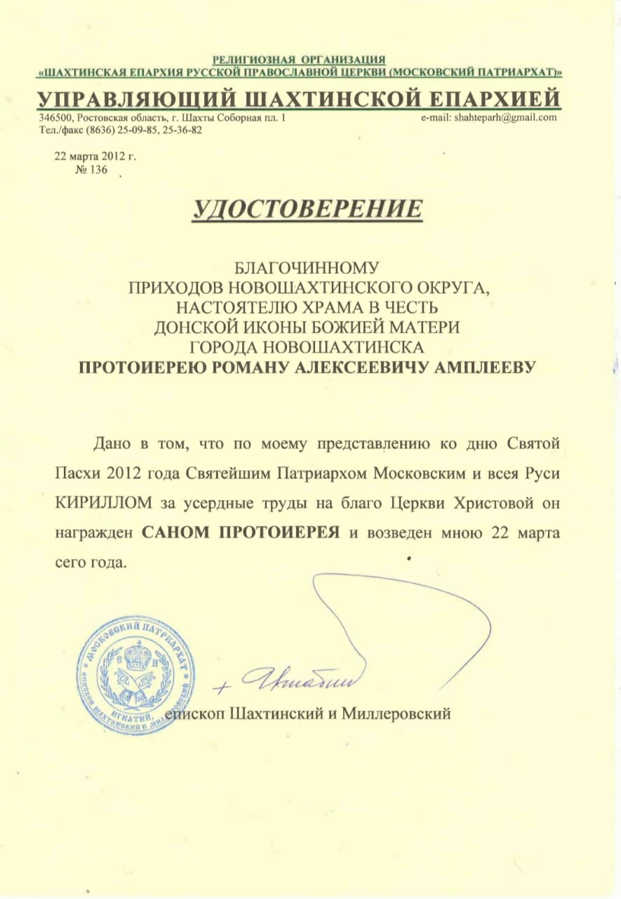 Прихожане и сотрудники Донского храма города Новошахтинска поздравили протоиерея Романа Амплеева с двенадцатилетием служения в сане протоиерея