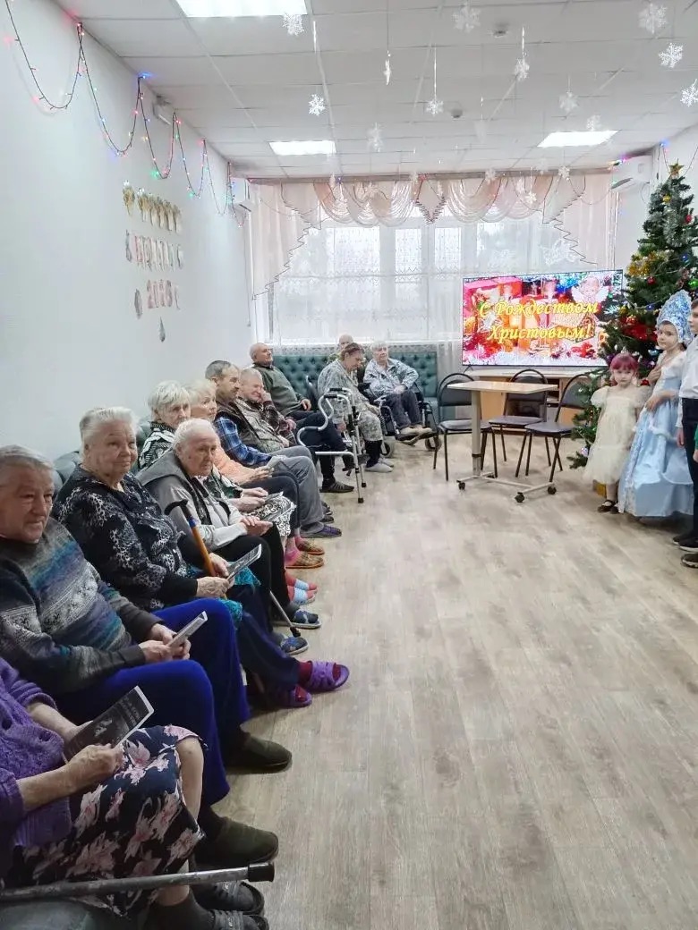 Воспитанники учебно-воскресной группы прихода с преподавателями Хомутовой Н.И., Жуковой Л.И., Лавриненко А.И. показали праздничный рождественский концерт: пели известные христианские песни, исполнили танцевальные номера. Прихожане-катехизаторы Лавриненко А.И. и Музыка М.А. рассказали о значении рождения Христа Спасителя для всего мира. Пожилым людям вручили сладкие подарки и православный календарь, раздали листовки о праздниках Рождества и Богоявления.