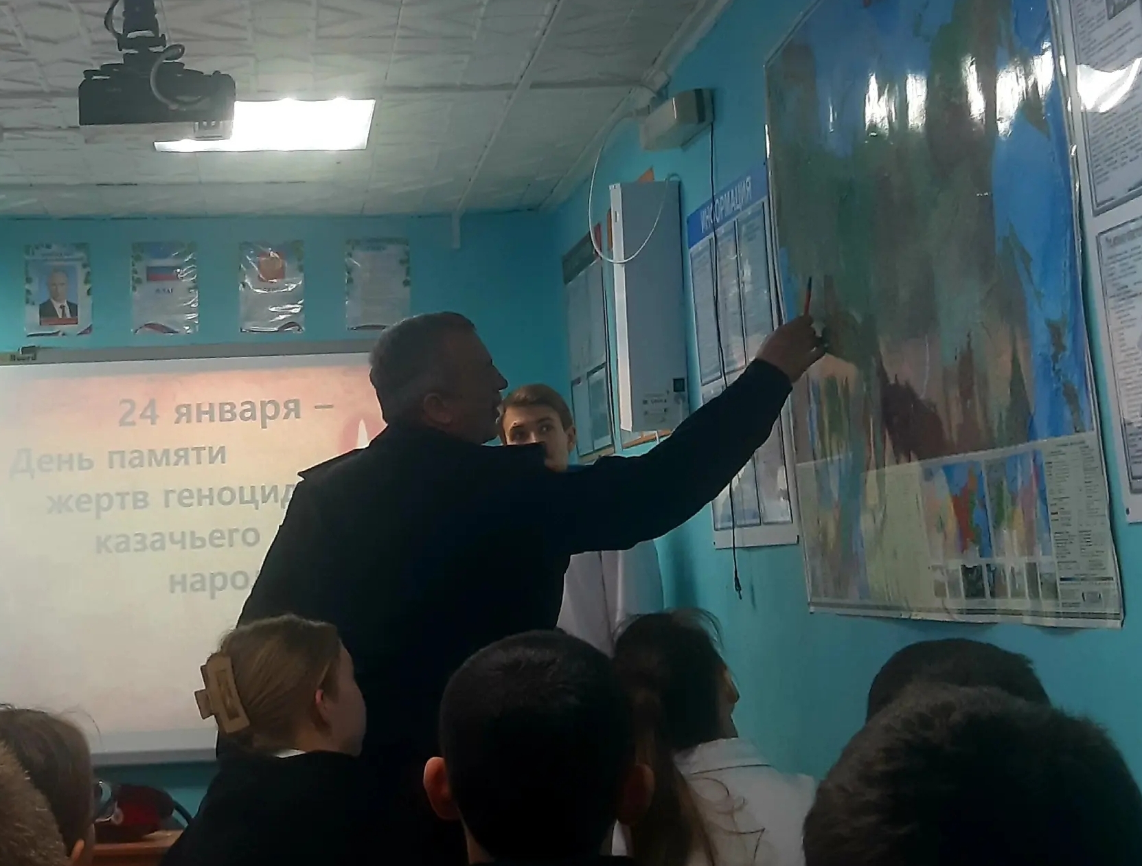 Учащиеся школы и гости с помощью презентации узнали много нового о трагических событиях в истории Дона и России, связанных с гонениями на казачество.