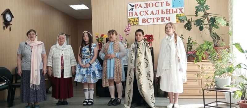 Концерт начался с выступления прихожан храма: были исполнены пасхальные песнопения и прочитаны стихи о празднике Пасхи. Праздничную встречу продолжили учащиеся Усьманской основной школы под руководством помощника по образованию Е.Б. Бурим. Дети представили сценку о Великом посте и Весне духовной, в которой напомнили, что пасхальная радость приходит после трудов воздержания и смирения, покаяния и дел милосердия. Также они исполнили народную песню под аккомпанемент гитары.