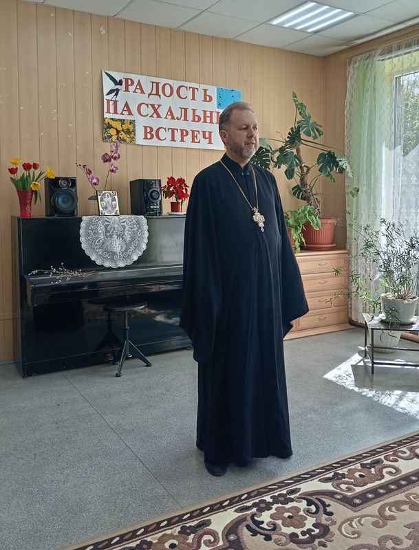 Затем протоиерей Роман ещё раз поздравил всех присутствующих с праздником Пасхи и вместе с детьми вручил пасхальные гостинцы.