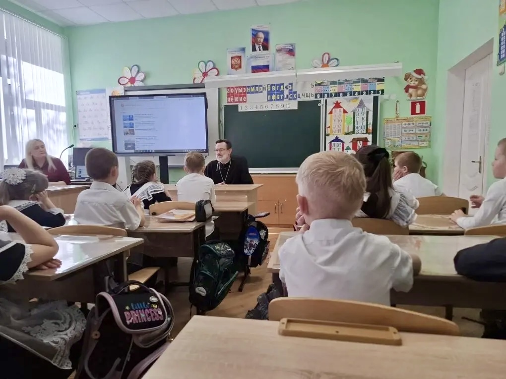 В рамках программы "Разговоры о важном" настоятель храма Покрова Пресвятой Богородицы ст. Каргинской иерей Борис Юров провел занятие в 1 классе МБОУ ООШ им.М.А. Шолохова. Во время беседы дети узнали как вера в Бога объединяет людей и помогает в решении жизненно важных вопросов.