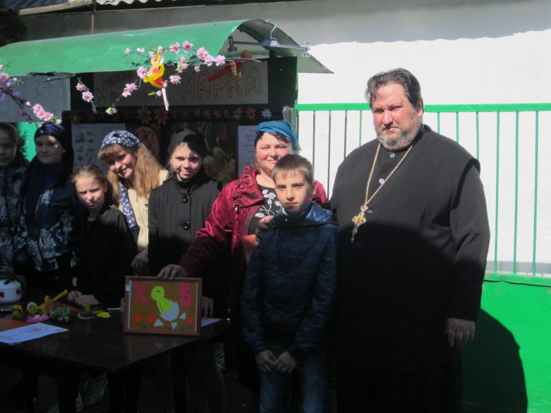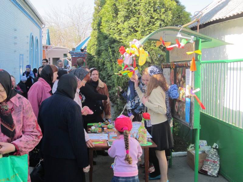 К празднику Вербного воскресенья на подворье Никольского храма города Шахты была проведена детская выставка-ярмарка. Воспитанники вокресной школы, под руководством директора Сюсюкиной Татьяны Николаевны, с любовью готовили поделки своими руками. Средства, вырученные от продажи поделок, пойдут на развитие воскресной школы.