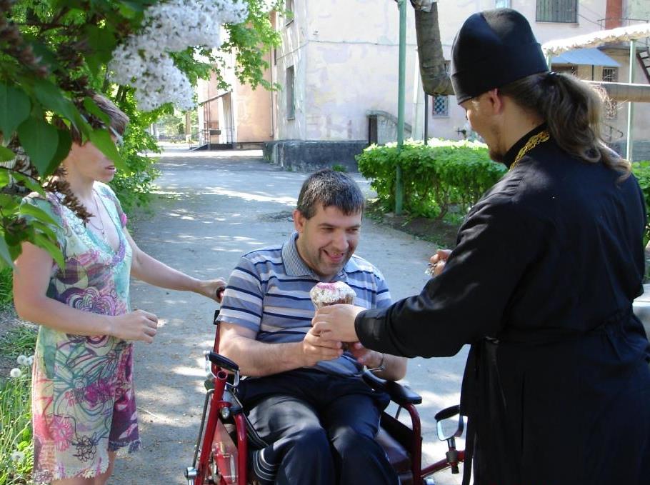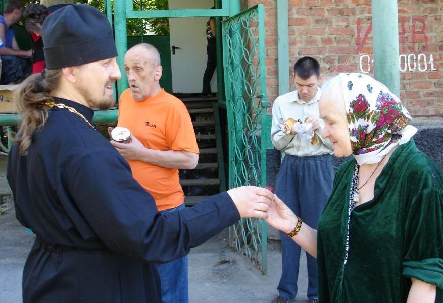 Во вторник Светлой седмицы, в день празднования Иверской иконы Божией Матери, настоятель храма Покрова Пресвятой Богородицы города Шахты иерей Михаил Борисенко и прихожане посетили психо-неврологический диспансер г.Шахты и поздравили его пациентов со Светлым Христовым Воскресеньем. Немощные получили пасхальные куличи и яйца.