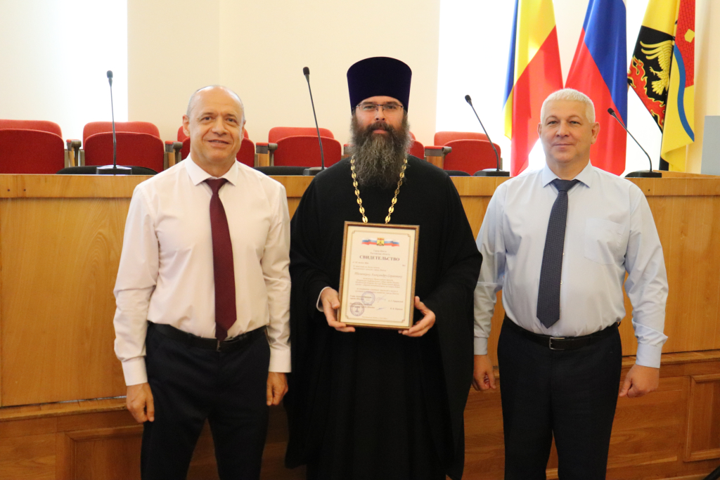 Ко Дню города Шахты иерею Александру Теличкину и его супруге вручены почетные награды