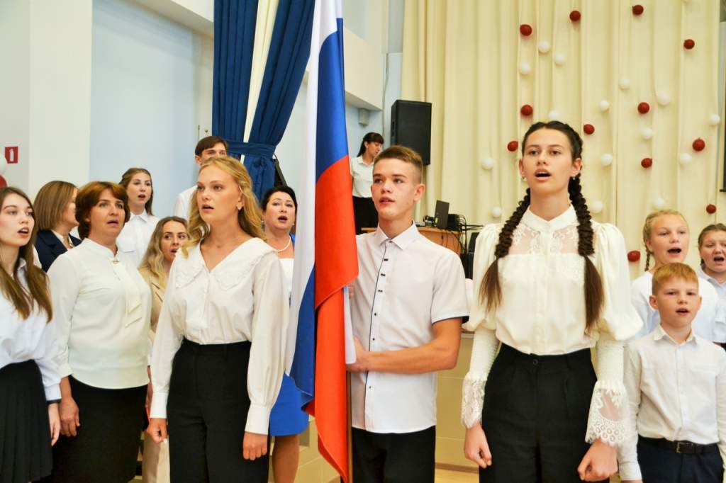 Праздничные мероприятия в школах начались с традиционной церемонии поднятия государственного флага и исполнения государственного Гимна РФ. Со всеми школьниками прошли внеурочные занятия «Разговоры о важном».