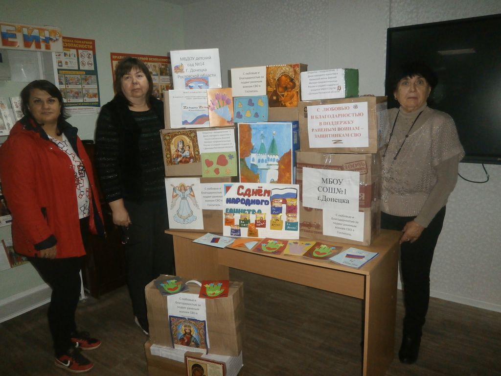 С 31 октября, по благословению благочинного Донецкого округа иерея Владимира Татаркина и в соответствии с совместным проектом «Наследие», завершилась волонтерская акция милосердия «Благодарность и забота о раненых воинах СВО». В госпиталь ко Дню народного единства и Казанской иконы Божией Матери переданы поздравительные открытки и посылки с подарками.