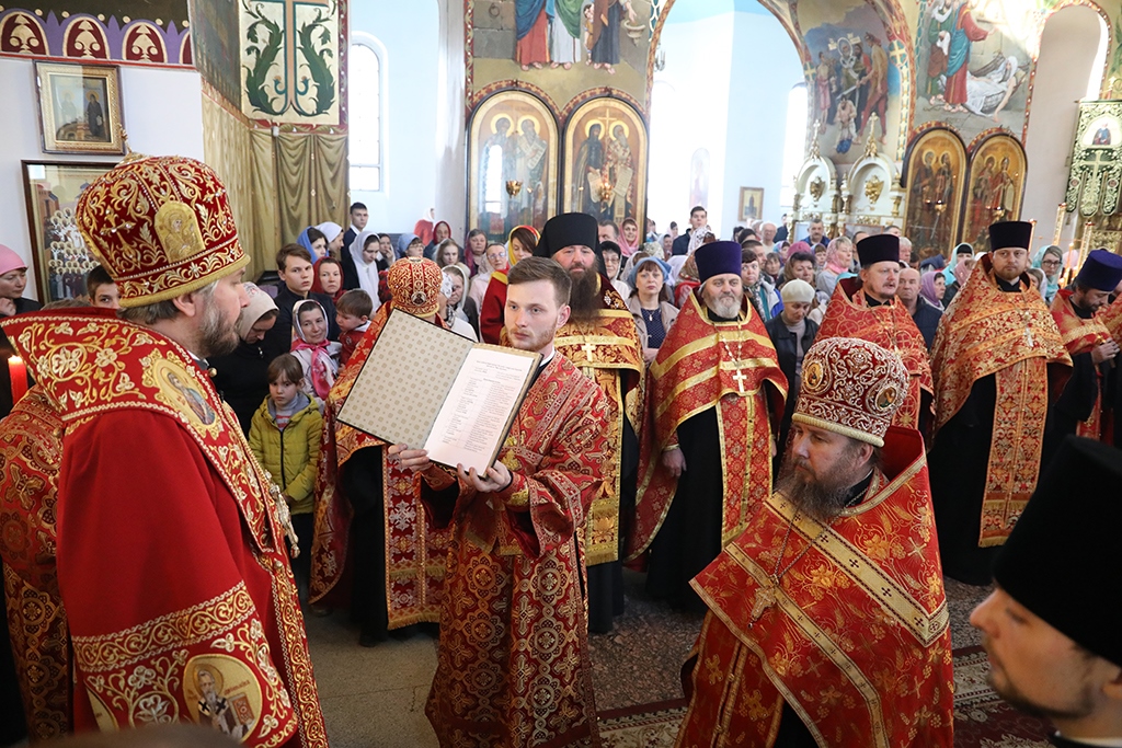 В день празднования Светлой Пасхи благодатный огонь, доставленный из Иерусалима в Покровский кафедральный собор г. Шахты, Преосвященнейший епископ Симон раздавал верующим по окончании пасхальной великой вечерни.