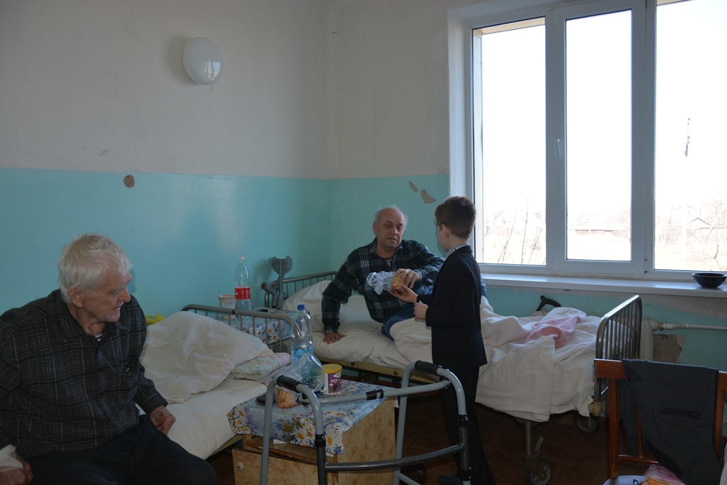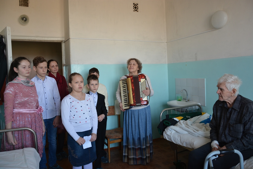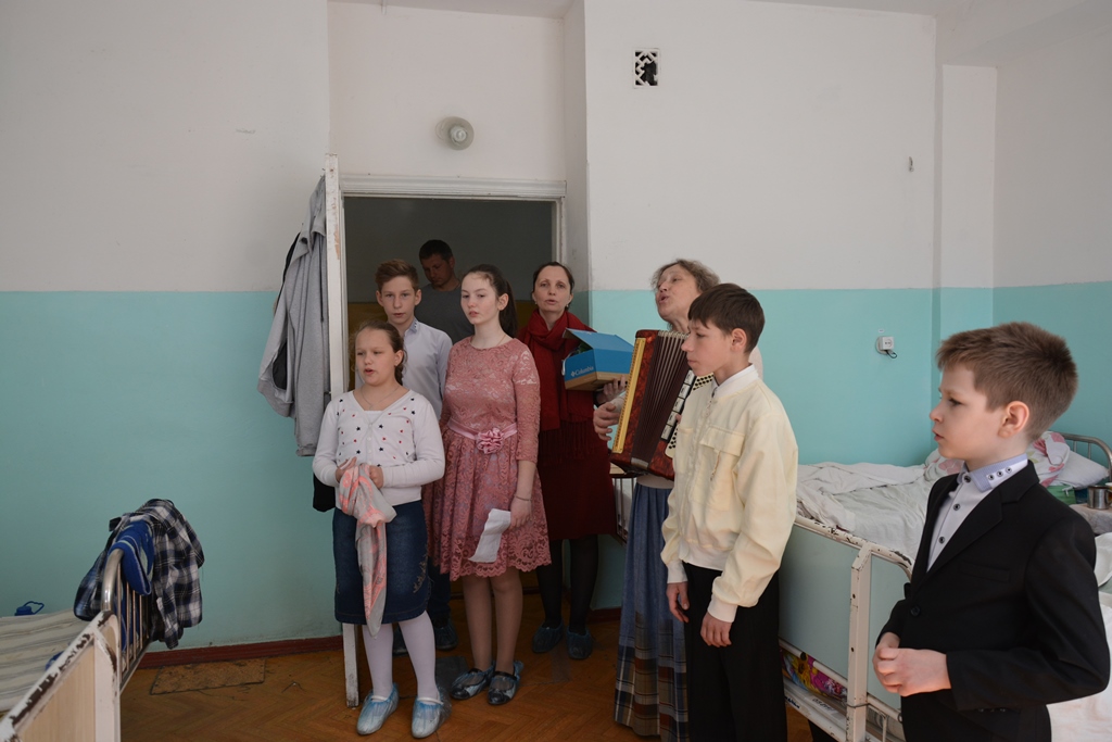 Дети прочитали стихи, спели песни, преподнесли сувениры, сделанные собственными руками, и, конечно, в каждой палате зрители получили пасхальный кулич и яйцо.