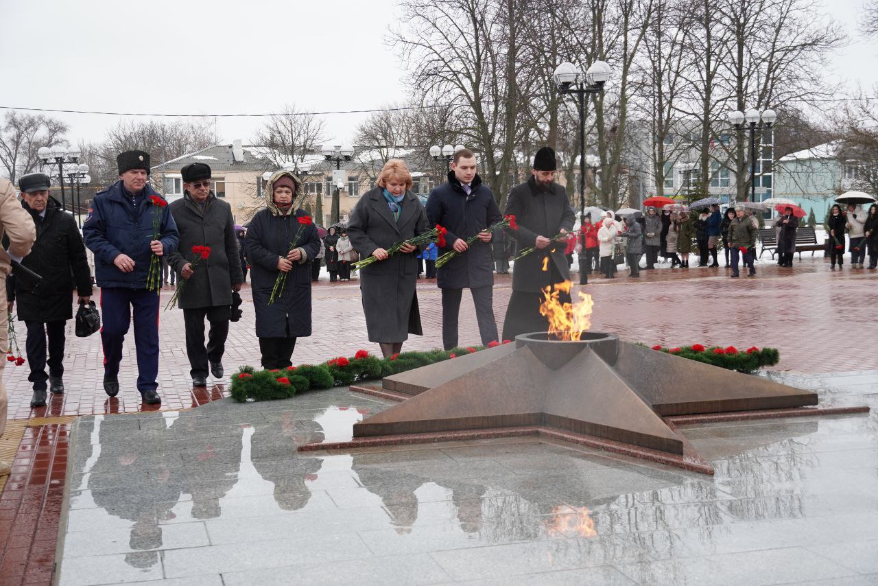 В церемонии возложения цветов и венков приняли участие: временно исполняющий обязанности главы администрации Октябрьского района Татьяна Юшковская, заместитель председателя Собрания депутатов Наталья Злобина, депутат Законодательного Собрания Ростовской области Аркадий Горцевской, благочинный приходов Нижнедонского округа протоиерей Сергий Яценко, председатель Совета ветеранов Юрий Точеный, руководитель первичной организации ветеранов-участников СВО Вячеслав Точеный, а также представитель Союза ветеранов Афганистана Николай Королев.