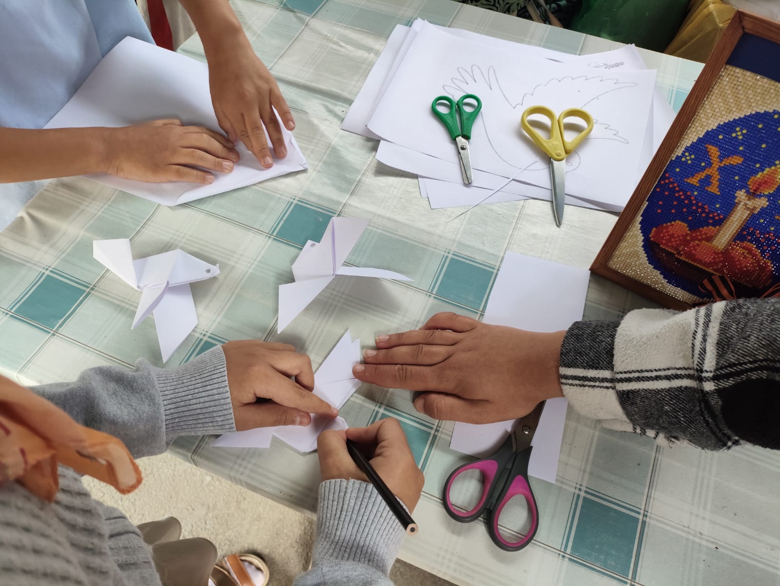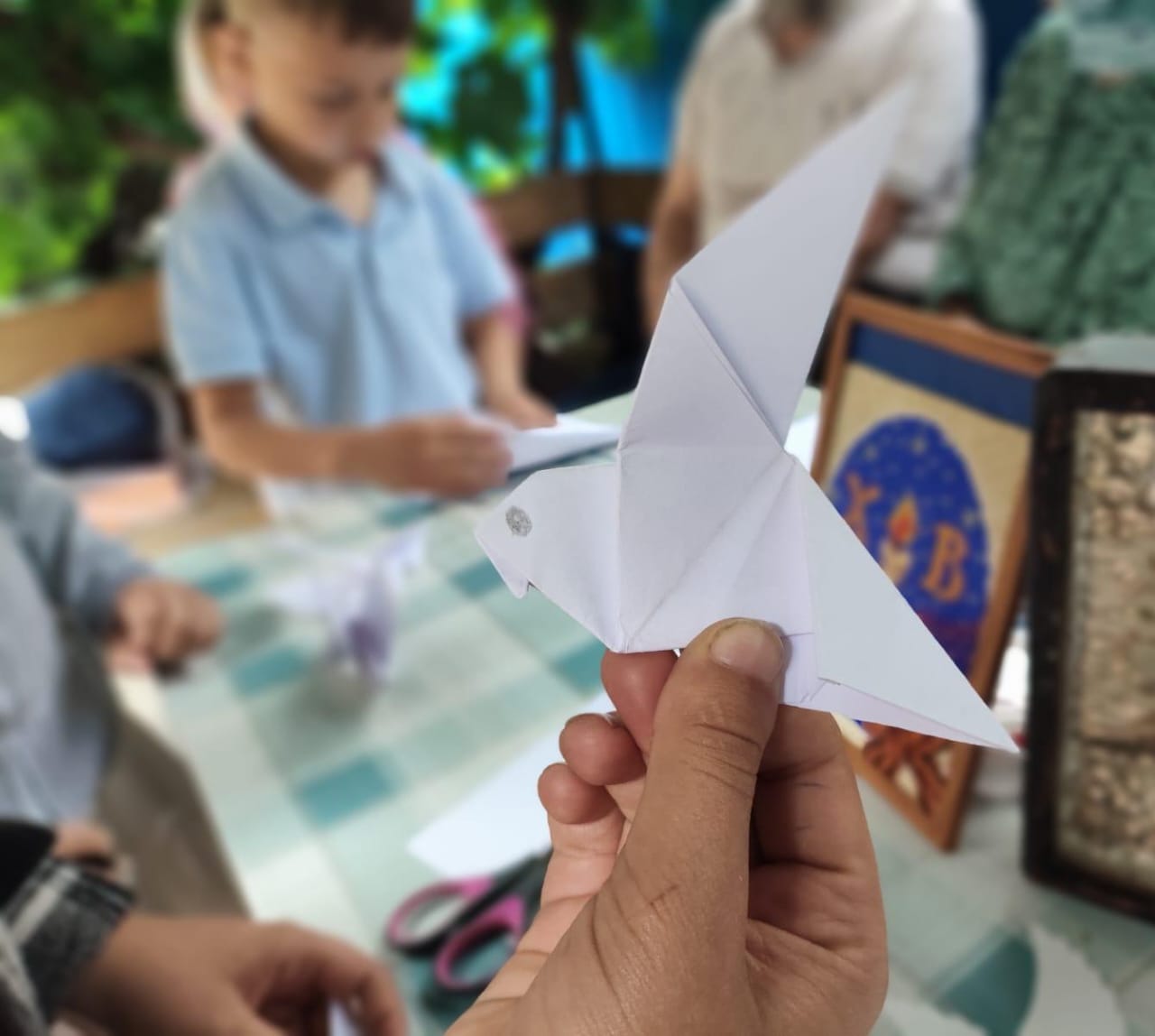 Участники акции сложили методом оригами голубей, а также вырезали бумажных голубей, познакомили детей и подростков с памятной датой начала Великой Отечественной войны 1941-1945 годов и рассказали помощи Божией в период войны.