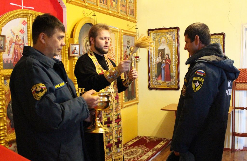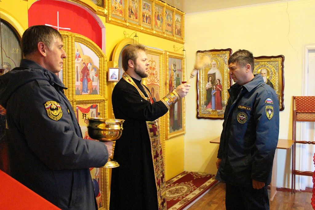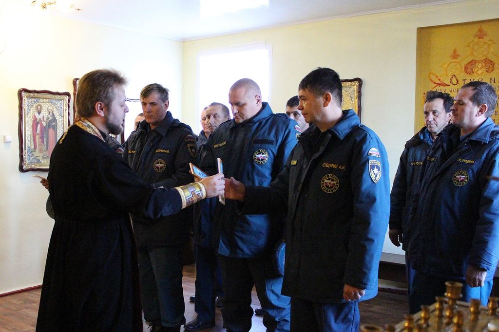 В проповеди священник упомянул о высокой степени ответственности, которая возлагается на служащих в МЧС и о том, как ценен перед Богом подвиг спасения людей. В память о посещении храма священник преподнес в дар присутствующим духовную литературу и выразил надежду на то, что такие посещения станут регулярными.