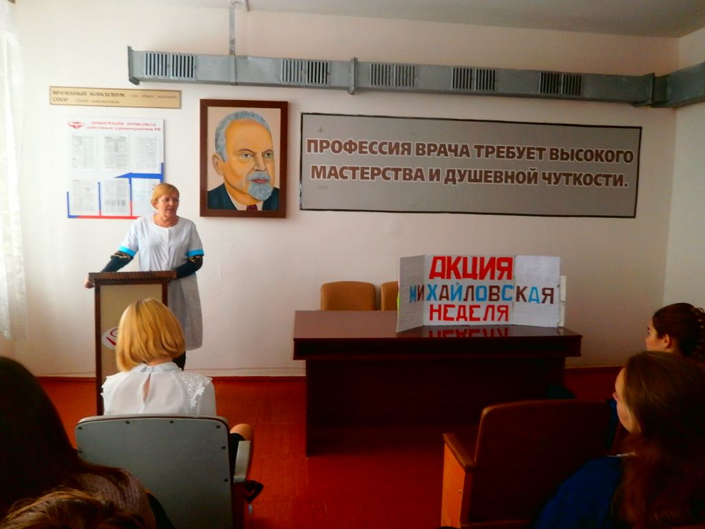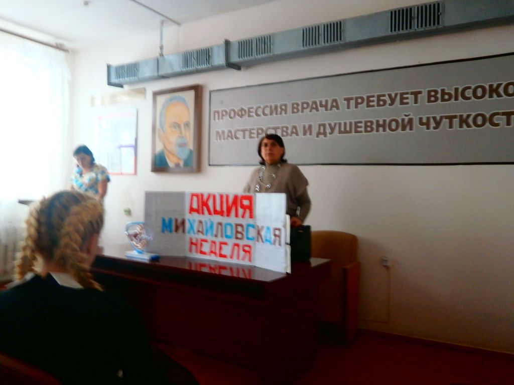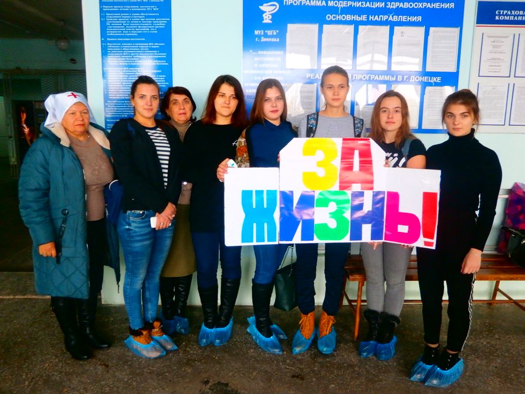 По трехстороннему соглашению Донецкого благочиния, ЦГБ г. Донецка и отдела образования г. Донецка в рамках Михайловской недели и в осуществление программы «Ладья» в актовом зале ЦГБ проходили мероприятия «За жизнь».