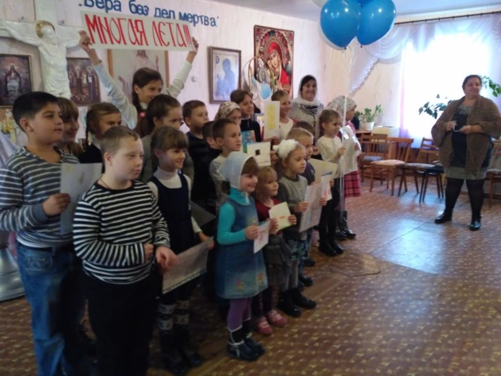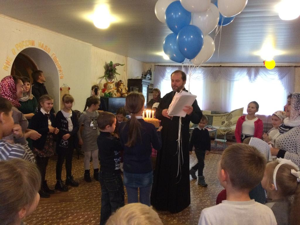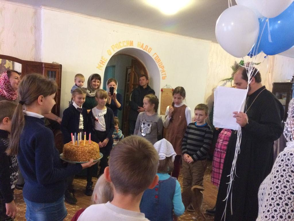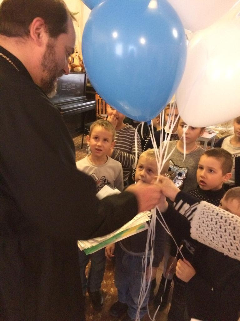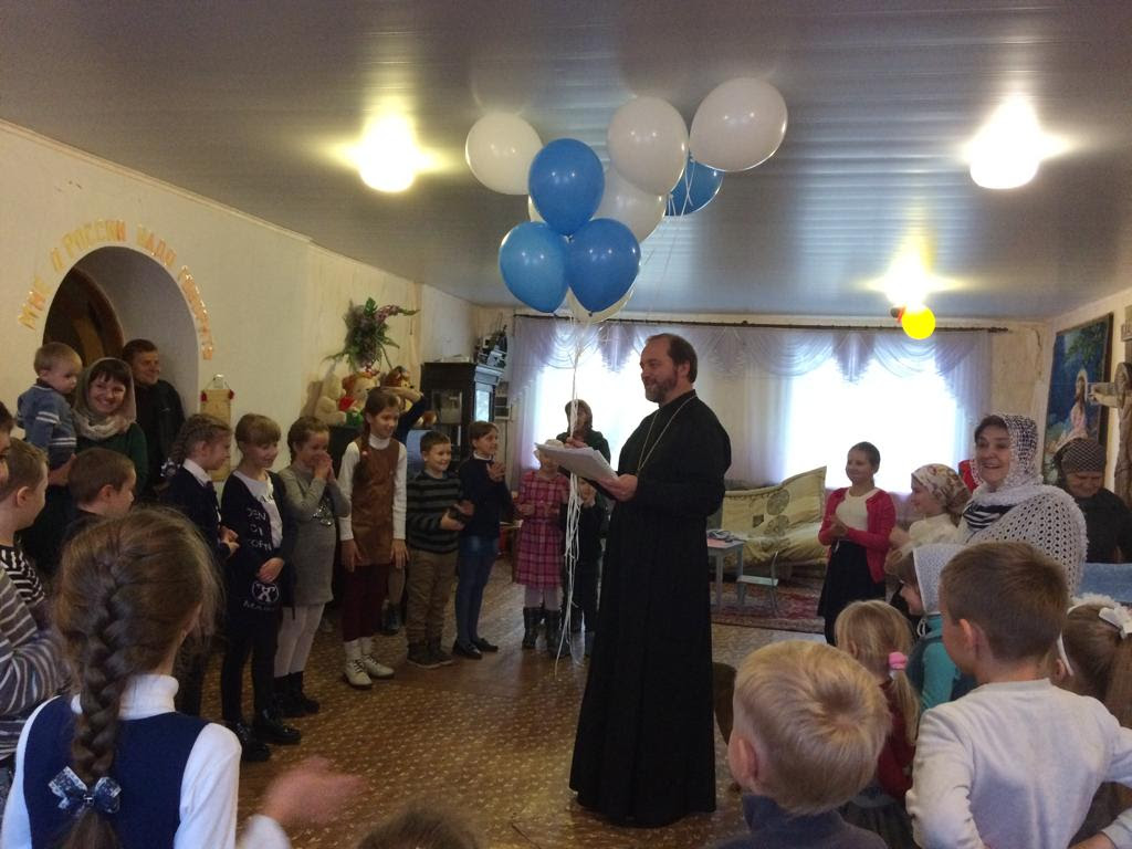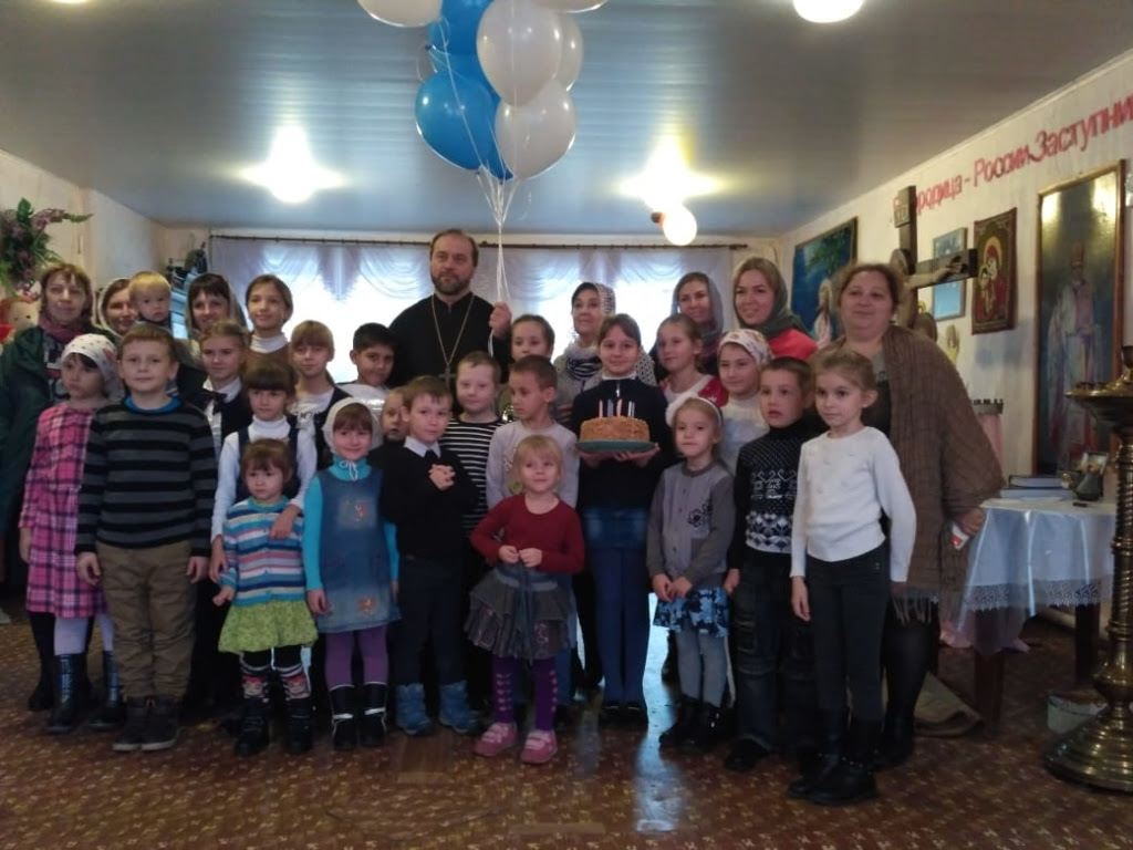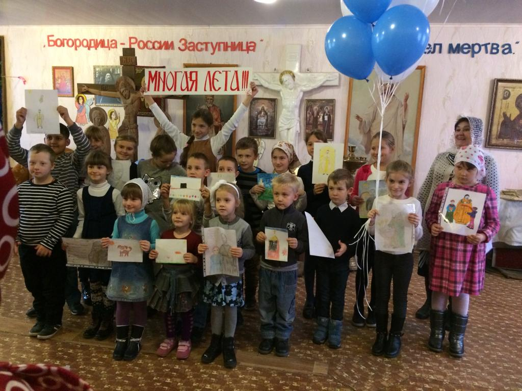 Неподдельной радостью светились глаза юных прихожан, когда читали стихи-поздравления батюшке, дарили рисунки, пели хороводную песню, преподнесли именинный пирог и букет из воздушных шаров.