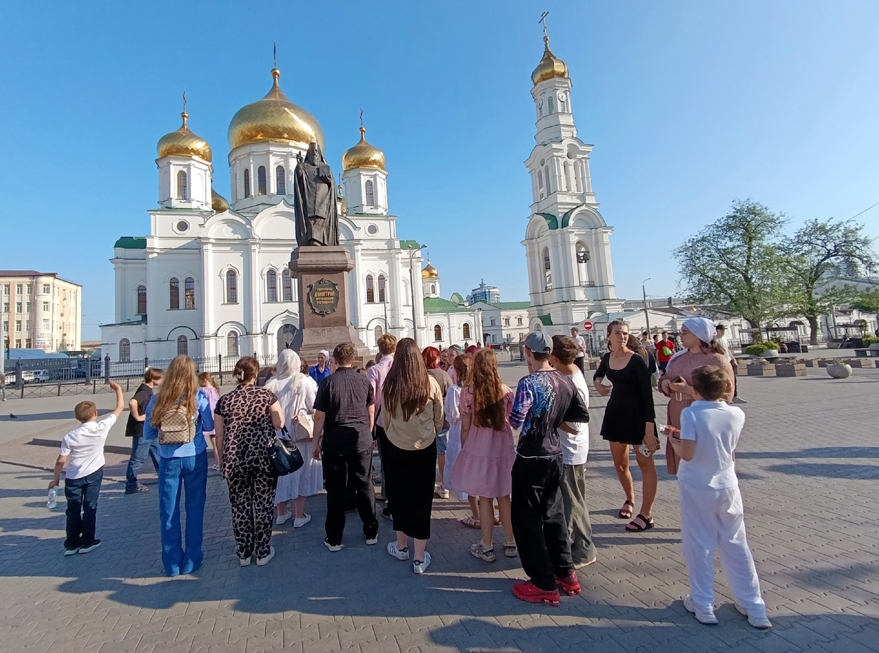 Но прежде мы решили поклониться святыням Донской земли. Посетили Ростовский кафедральный собор Рождества Пресвятой Богородицы. Вознесли свои молитвы у Креста Господня, Приложились к Донской иконе Божией Матери, помолились у ковчега с мощами святых. Вы знали, что у нас в Ростове в специальном ковчеге хранится частица Честного древа Господня? А ещё есть частица пояса Пресвятой Богородицы. Ребята услышали историю собора, которая неразрывно связана с историей города Ростова-на-Дону. Побывали и у памятника святителю Димитрию Ростовскому, в честь которого была названа крепость, давшая начало будущему городу. Так в наших путешествиях мальчишки и девчонки знакомятся со своей малой Родиной и учатся любить Донской край.