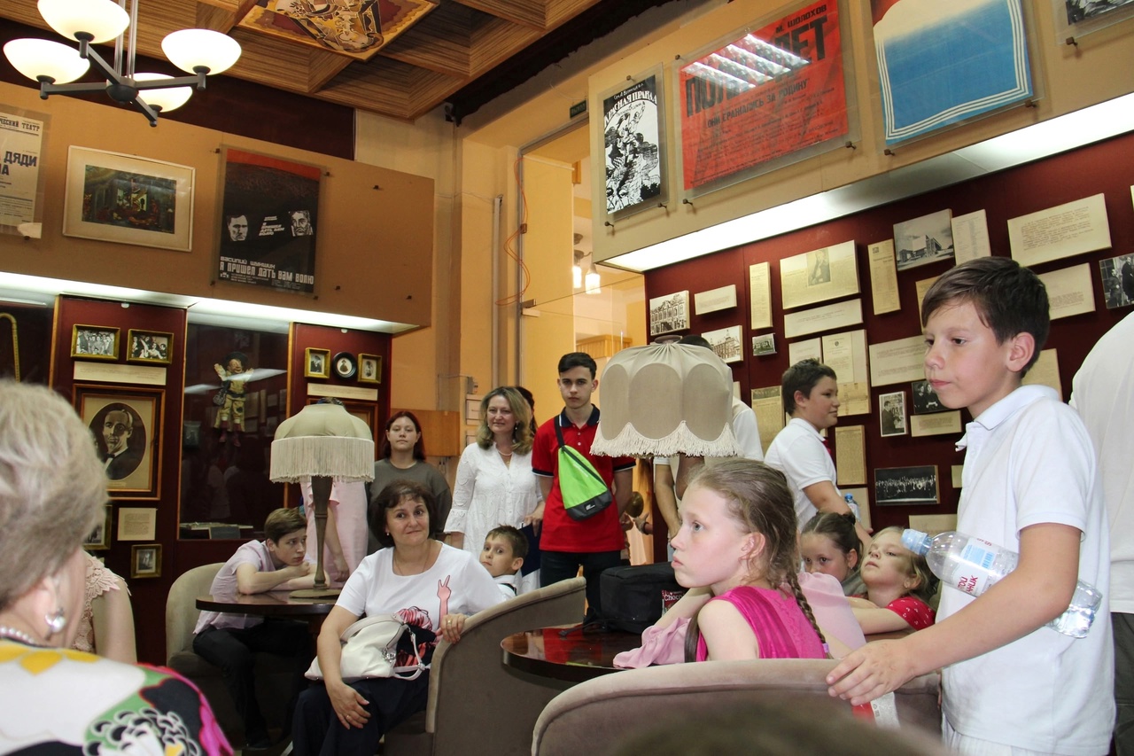Ну а из собора все поспешили в театр. В театральном музее услышали удивительный рассказ экскурсовода о становлении театра. О здании довоенной постройки, которое поражало своими грандиозными размерами и техническими возможностями. Оно было в три раза больше современного, а на сцену могла выехать тройка лошадей или настоящий броневик. К сожалению, после Великой Отечественной Войны горожане разбирали оставшиеся от театра руины, чтобы возвести на их месте новое здание, напоминающее своими очертаниями гусеничный трактор.