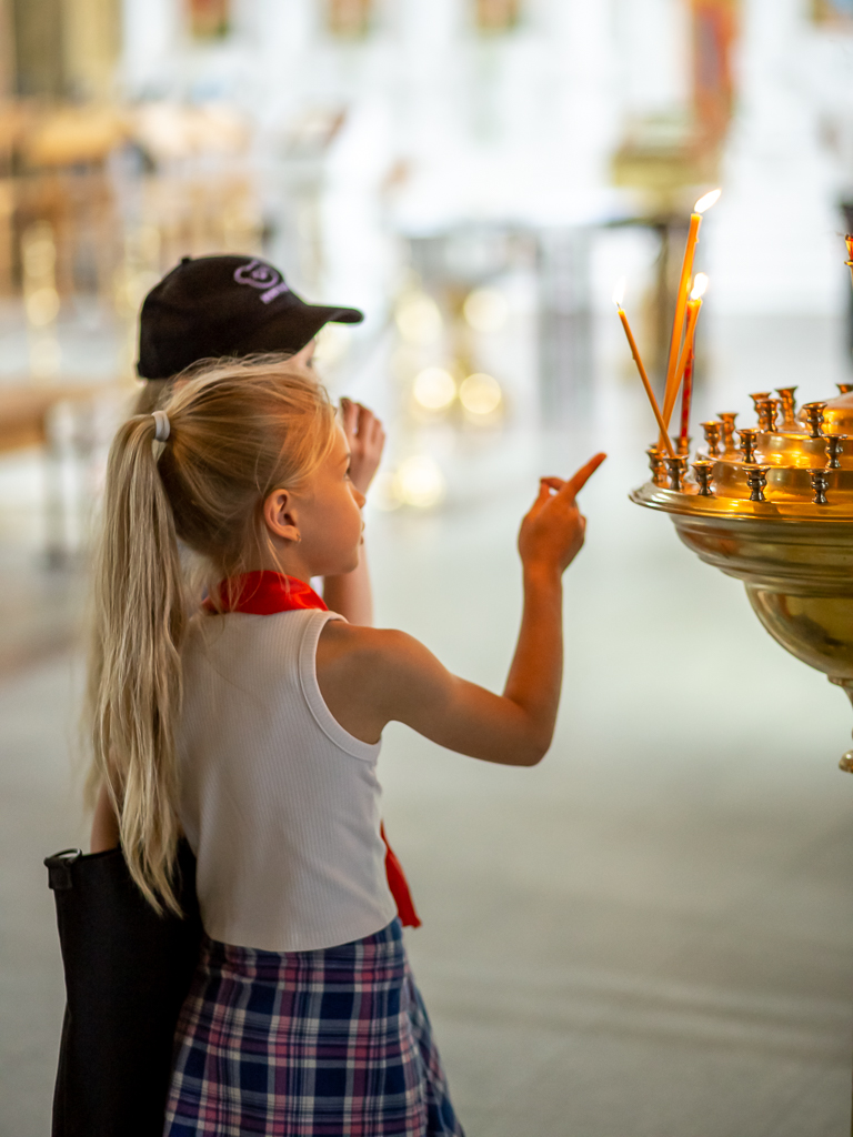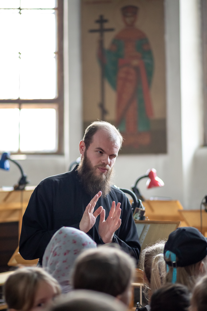 Священнослужитель подробно рассказал об особенностях собора, объяснив символику каждого элемента. Особое внимание уделил росписям храма — важной части православного искусства. На стенах собора изображены сложные образы и символы, несущие глубокий духовный смысл. Отец Никита объяснил иконографические сюжеты и аллегории, помогая участникам экскурсии лучше понять православную символику.