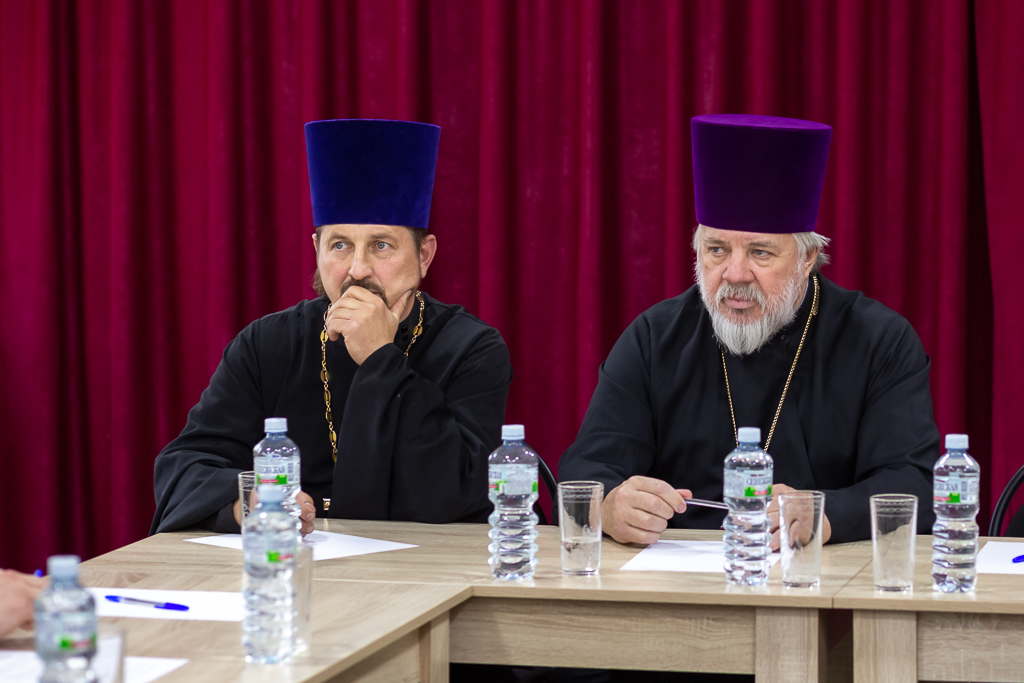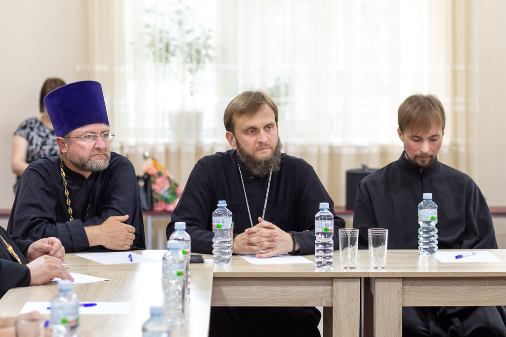 Священнослужители обменялись мнениями по имеющимся вопросам и приняли решение о необходимости усилить работу по основным направлениям внебогослужебной деятельности приходов (работа со школами и средне специальными учебными заведениями).
