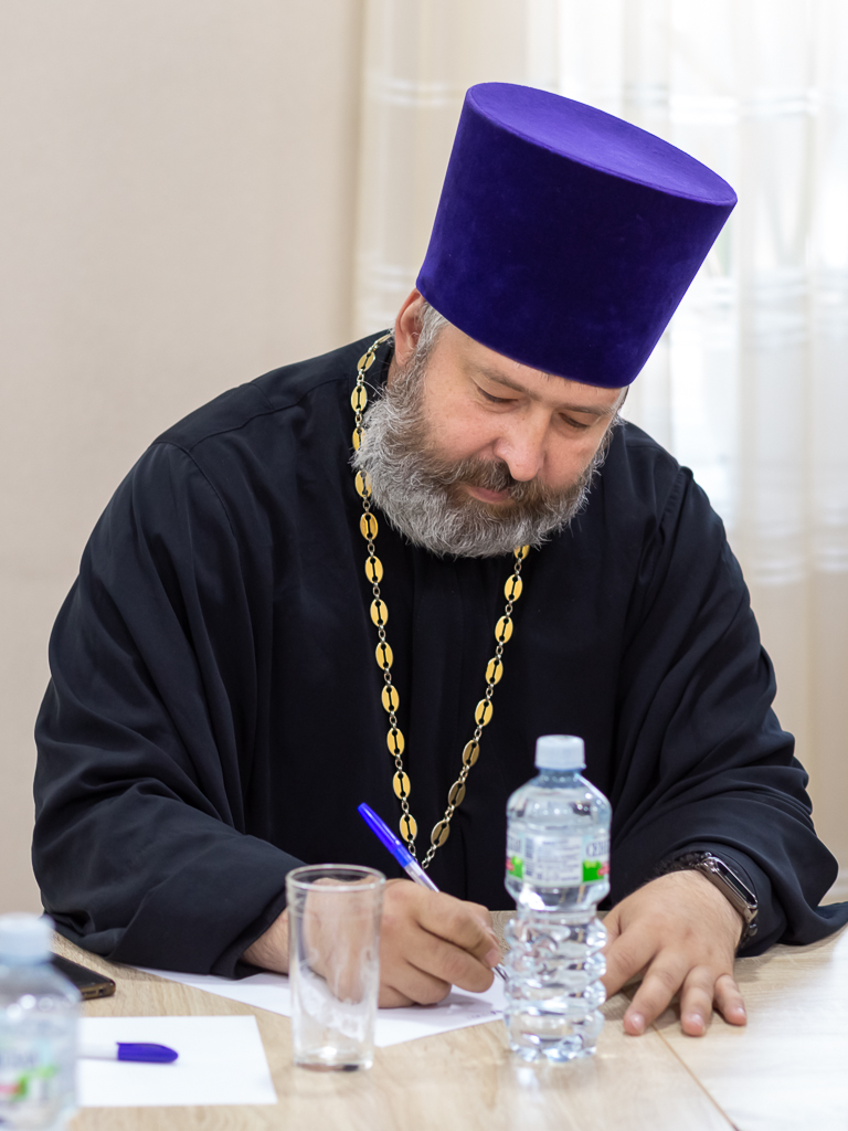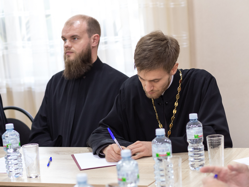 На собрании выступил диакон Никита Осипов с докладом о прохождении курсов повышения квалификации в Москве. Иерей Даниил Зырянов дал рекомендации по проведению информационной работы на приходах.
