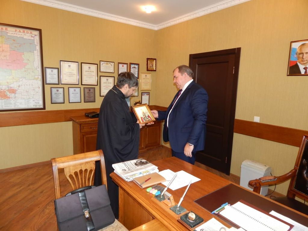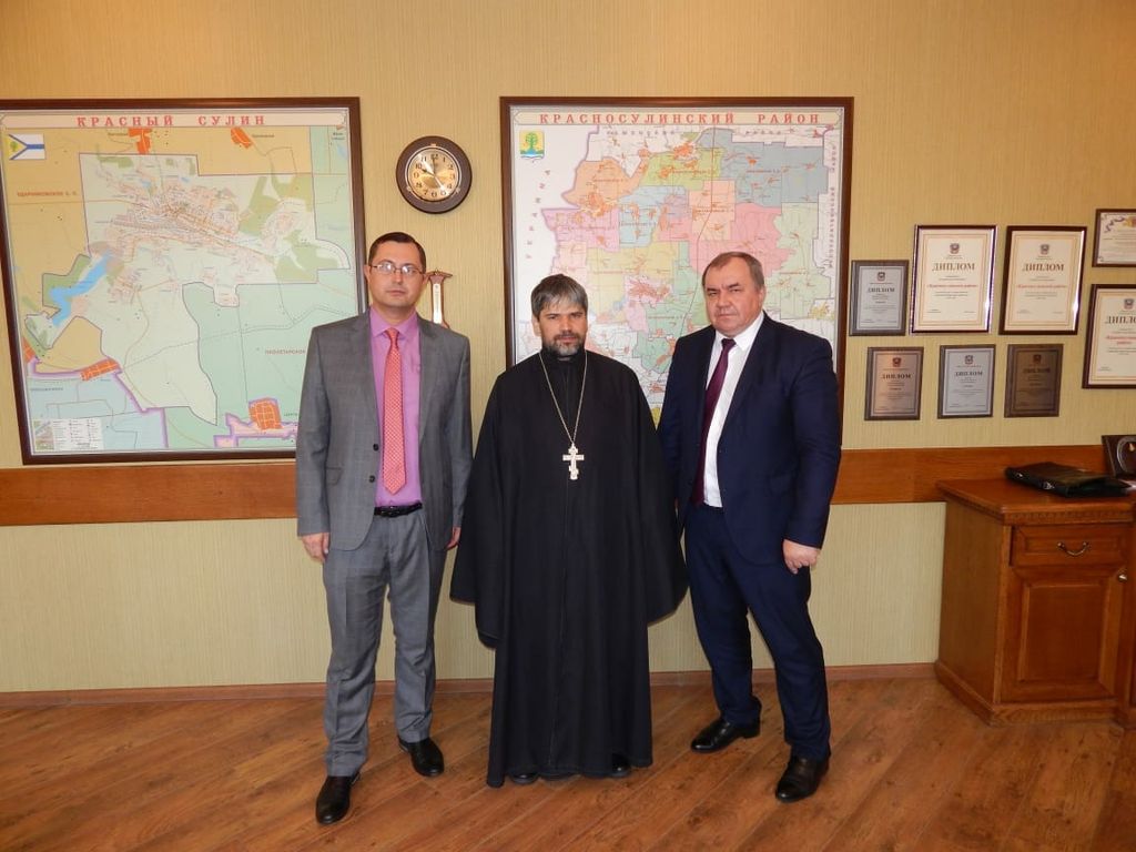 Иерей Сергей Столяров, председатель Приходского совета храма святого благоверного князя Александра Невского Сулинского благочиния провел встречу с главой Администрации Красносулинского района Николаем Александровичем Альшенко и с заместителем главы Администрации Валерием Борисовичем Шаповаловым.