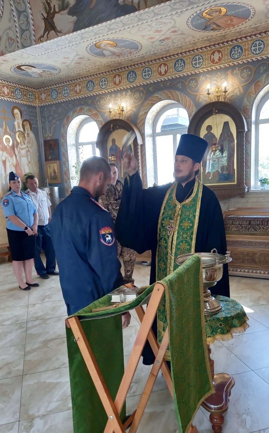 В соответствии с нормами Областного закона "О казачьих дружинах в Ростовской области", в храме Иоанна Предтечи ст. Боковской вновь принятые на службу в Казачью дружину Боковского района казаки-дружинники дали "Торжественное обещание".