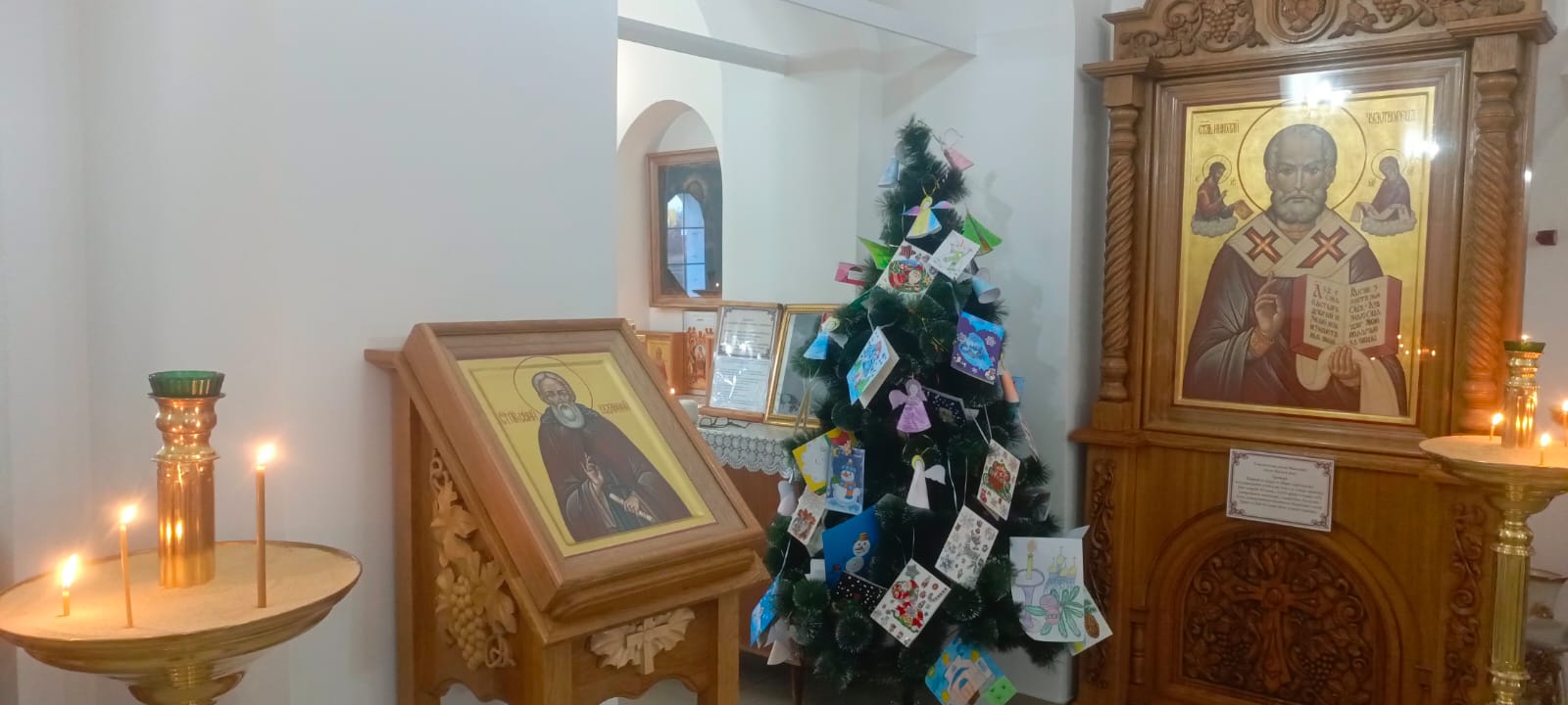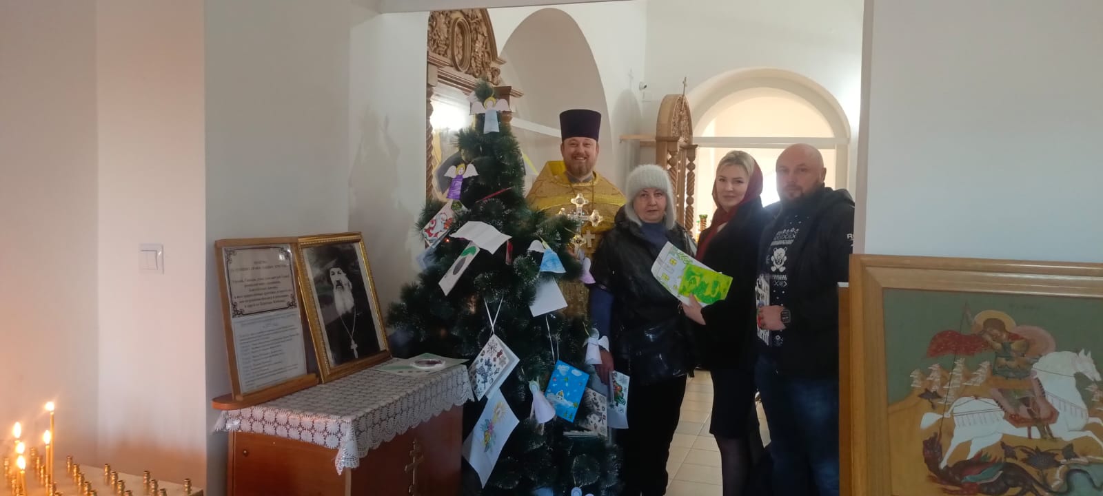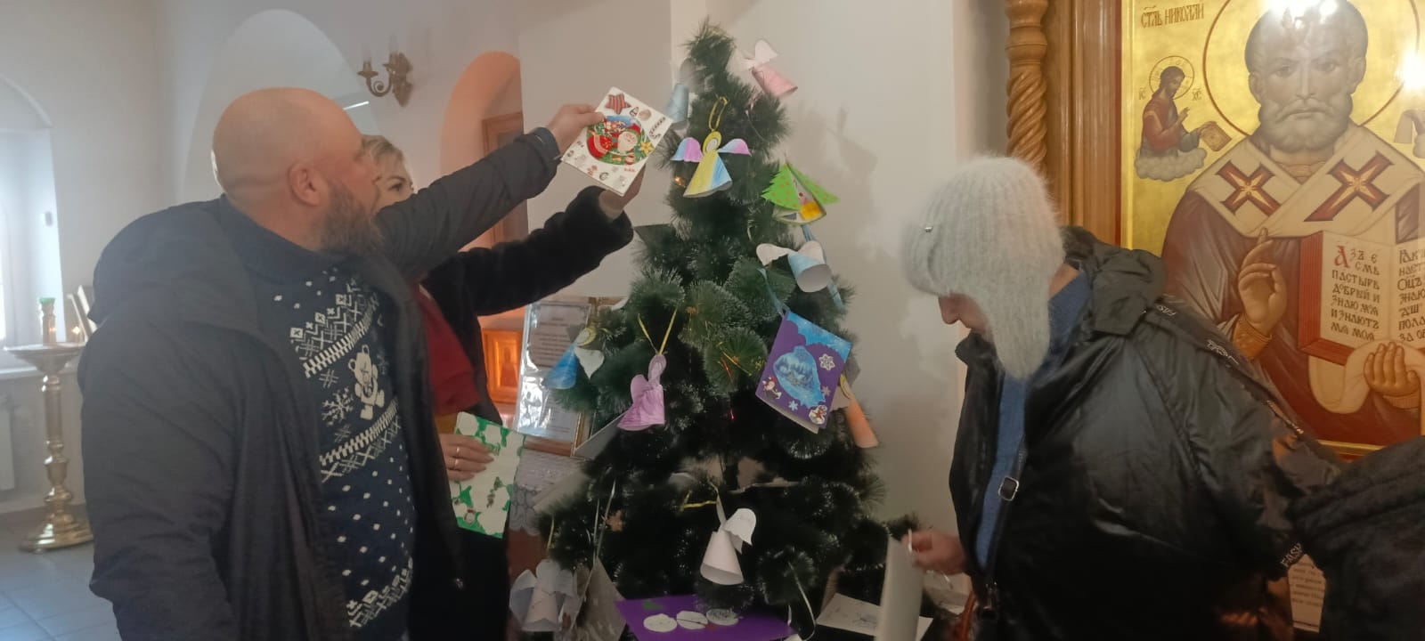 19 декабря, в день святителя Николая Чудотворца, архиепископа Мир Ликийских, после Божественной литургии, протоиерей Роман Амплеев настоятель Донского храма, благочинный Новошахтинского округа благословил старт доброй акции «Подарки к Рождеству Христову и Новолетию от св. Николая» для детей из семей, находящихся в трудной жизненной ситуации, семей с детьми-инвалидами, семей участников СВО. Дети готовят красочные открытки и вешают их на елку в храме, прихожане, или любой желающий могут снять их и купить подарок. Подарки вручаются 6 января в канун Рождества Христова и 13 января в храме Донской иконы Божией Матери. Все люди ждут добрых чудес, подарков и радости. И нам конечно же хочется поделиться теплом своего сердца и подарить подарки тем, кто сейчас обделен или находится в трудной жизненной ситуации.
