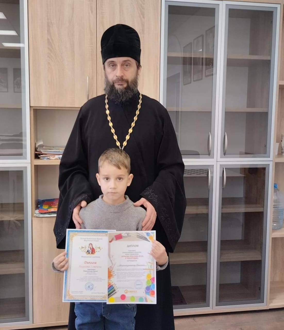 Поздравил юных художников благочинный приходов Нижнедонского округа протоиерей Сергий Яценко, который пожелал детям помощи Божией и дальнейших творческих успехов.