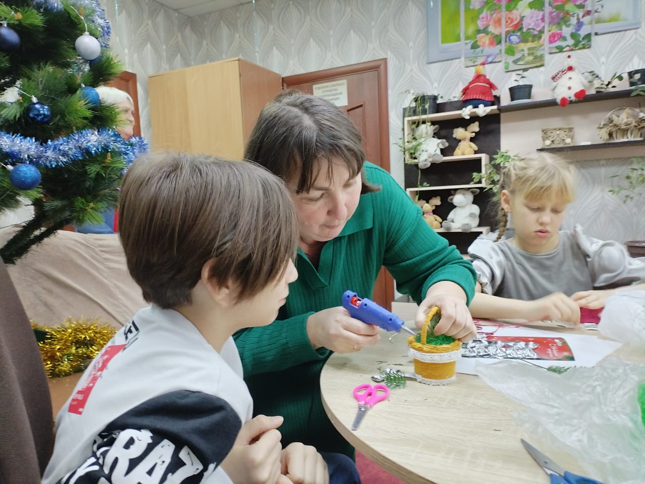 Затем педагоги воскресной школы Оксана Михайловна и Надежда Михайловна провели с ребятами мастер-класс по изготовлению корзиночек.