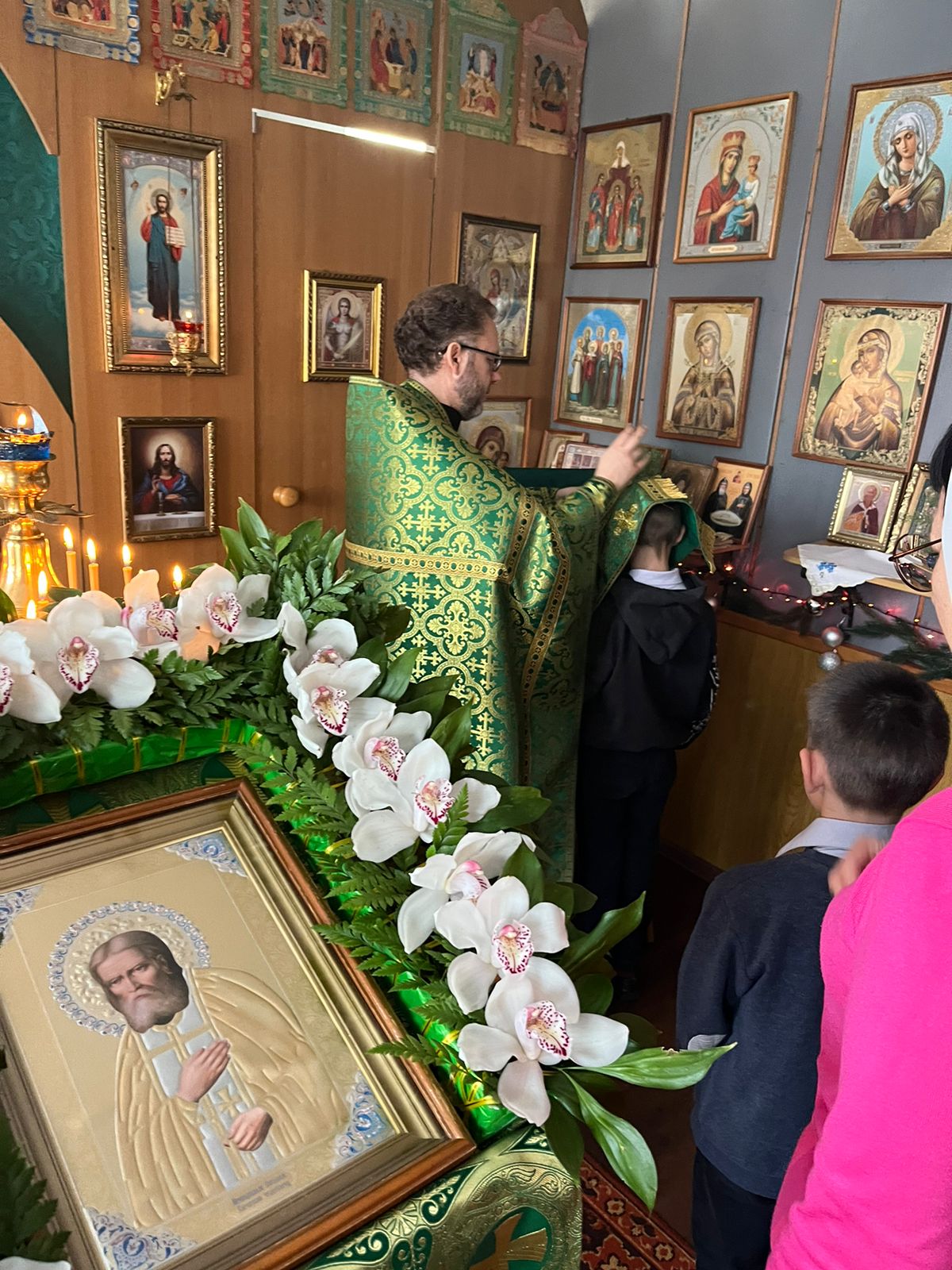 Священник поздравил присутствующих с престольным праздником и рассказал о духовном подвиге преподобного Серафима Саровского. На празднике присутствовала глава Красненкой сельской администрации Скупкова А.В., которая поздравила присутствующих с престольным праздником. Детям были вручены сладкие подарки.