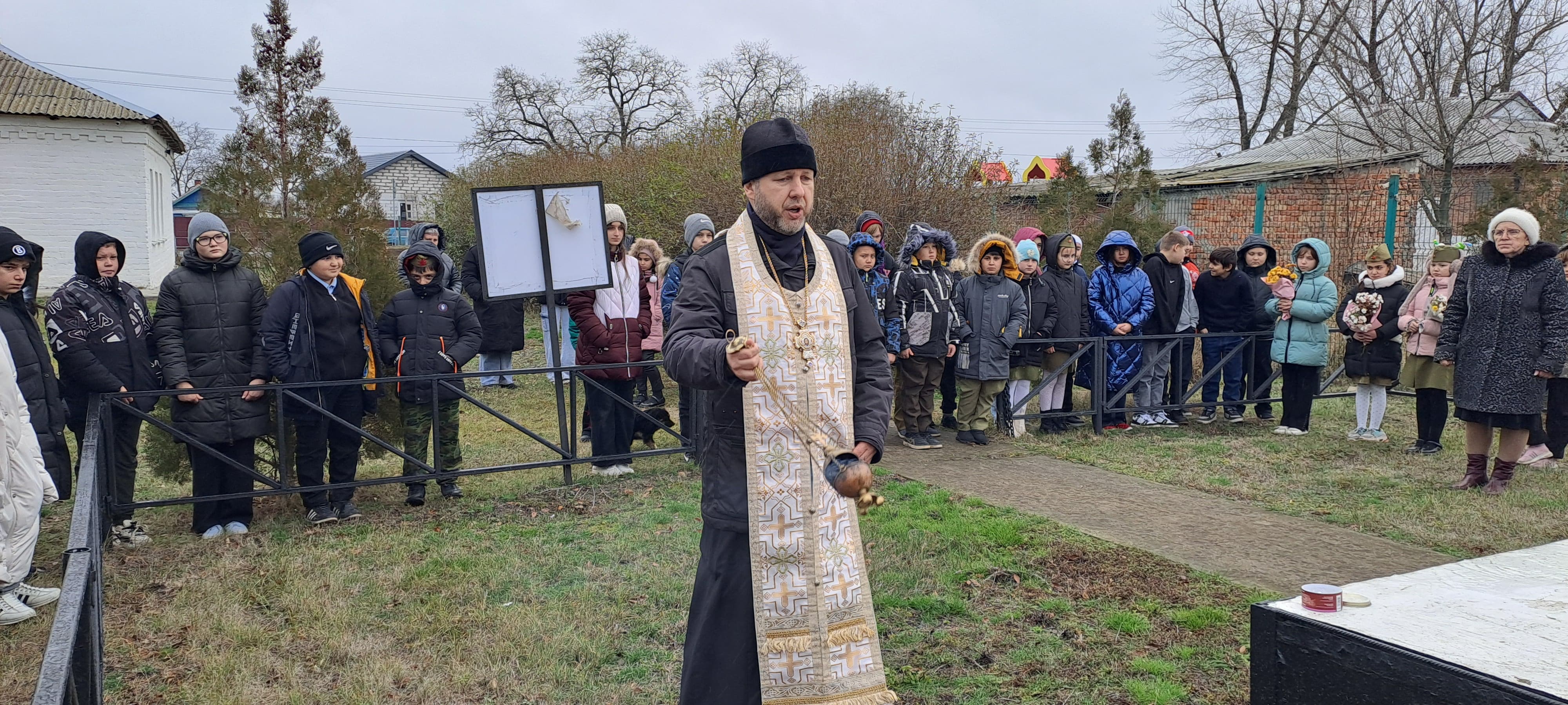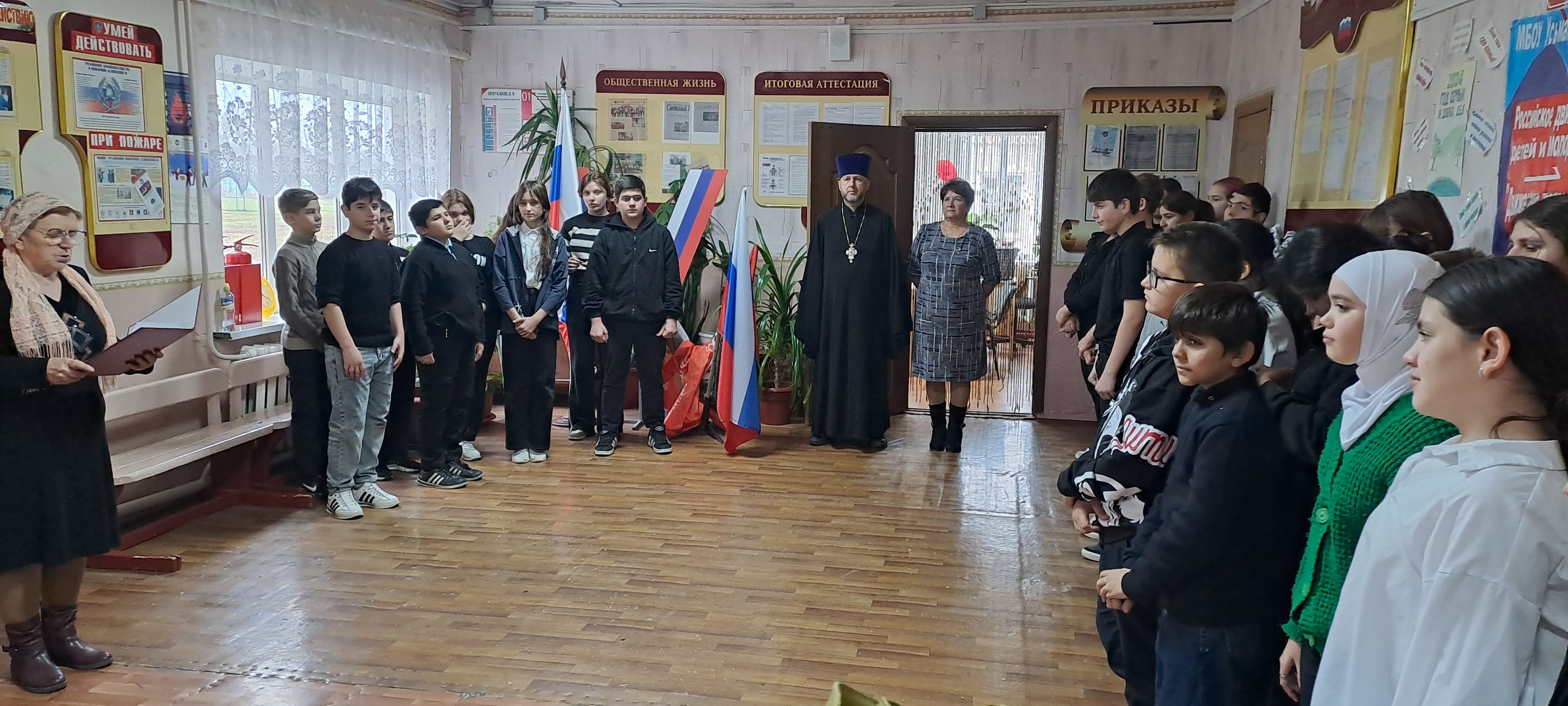 3 декабря в основной школе х. Усьмана Багаевского района прошла торжественная линейка, посвященная дню Неизвестного солдата. В мероприятии принял участие настоятель прихода святого великомученика Георгия Победоносца х. Усьмана протоиерей Роман Мясников.