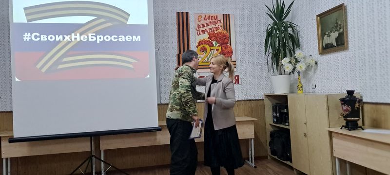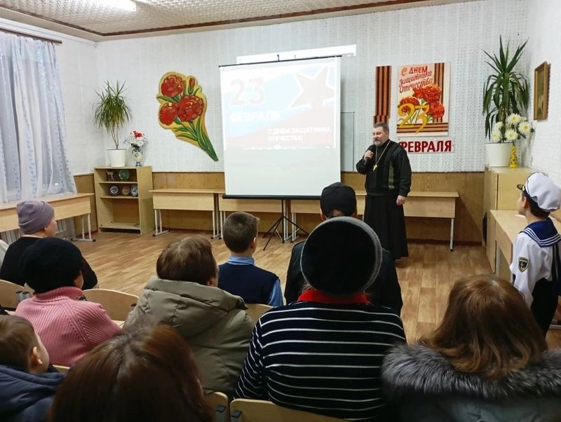 Клирик Пантелеимоновского храма пос. Майского протоиерей Сергий Сергошин принял участие в мероприятии, посвященном Дню защитника Отечества по приглашению заведующей ДК им. Чиха Татьяны Юрьевны Лапсовой. В этот день в учреждении культуры чествовали волонтеров, принимающих активнное участие в работе добровольческого объединения "Майские масксети".