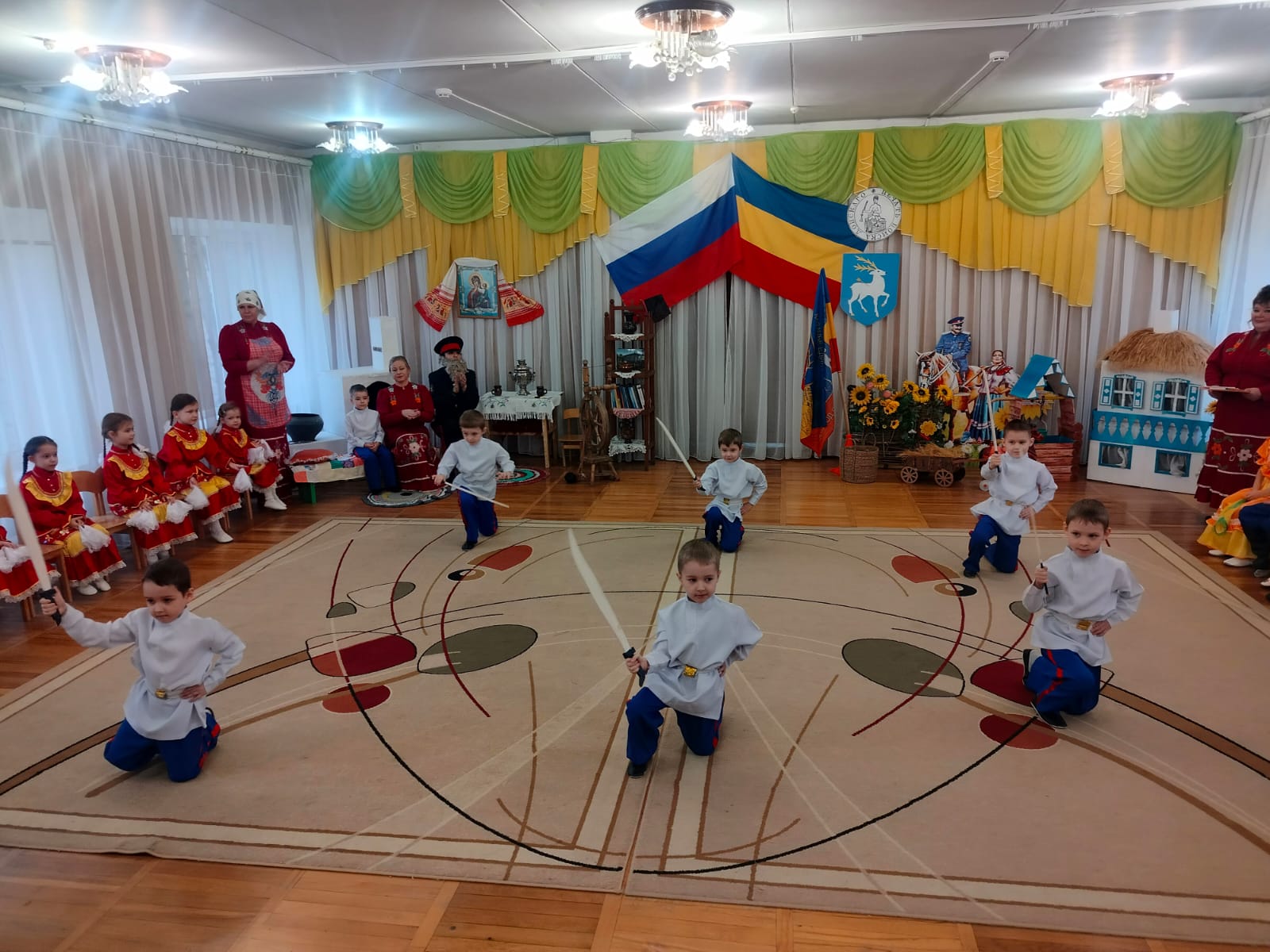 На мероприятии дети рассказывали пословицы и поговорки, связанные с казачеством, пели казачьи песни, танцевали.