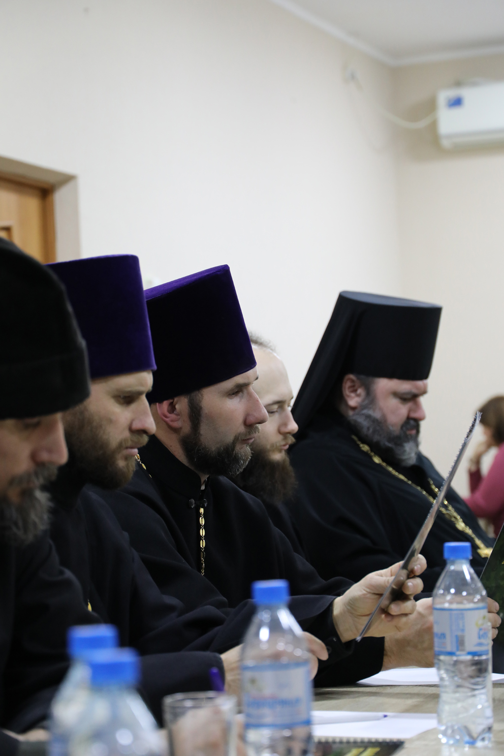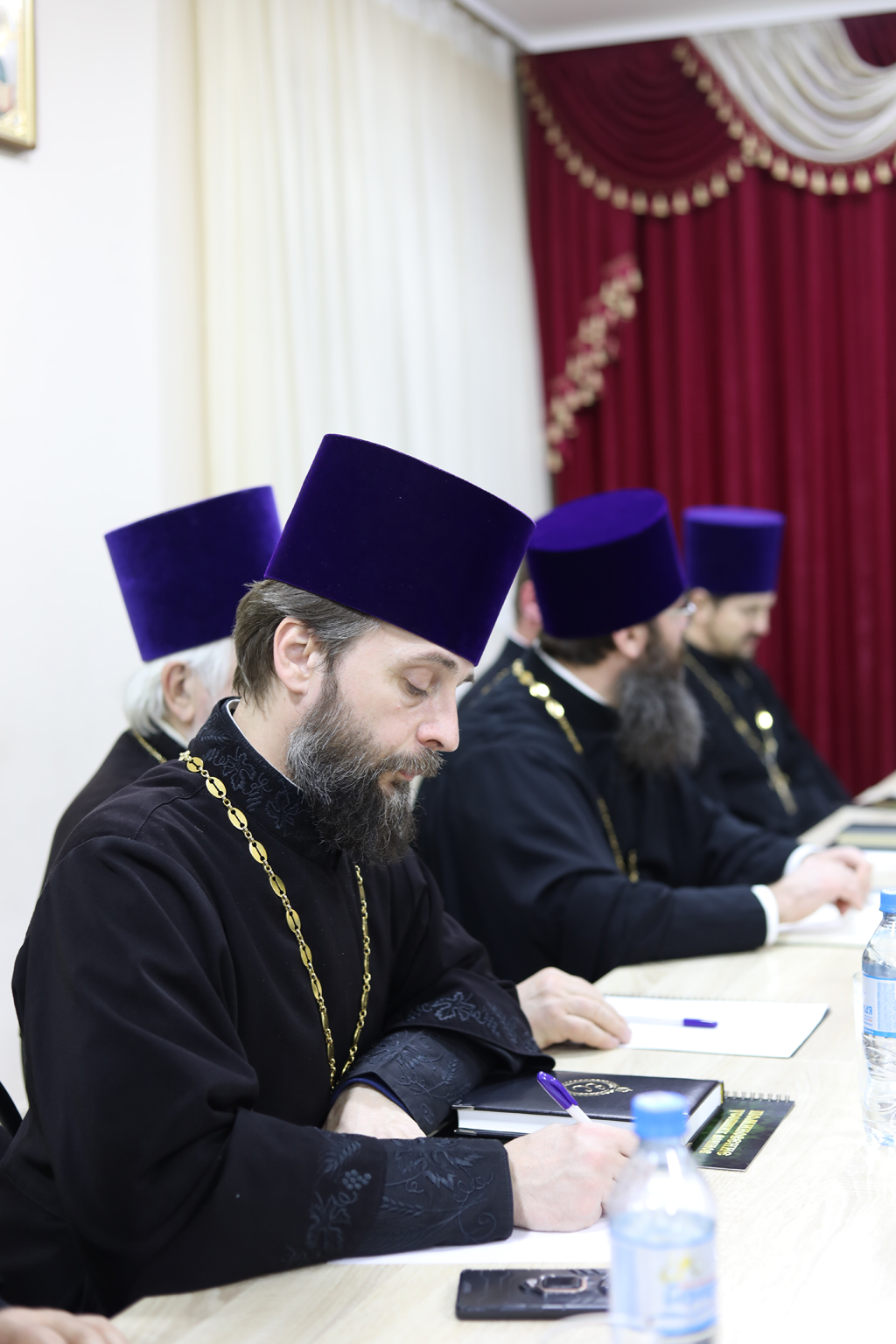 В Духовно-просветительском центре при Покровском кафедральном соборе города Шахты прошло собрание духовенства Александровск-Грушевского округа. Возглавил работу благочинный иерей Александр Теличкин. В повестку вошли рабочие и организационные вопросы, связанные с участием духовенства в городских мероприятиях и встречах с учениками и студентами. Также иерей Александр довел до сведения священнослужителей циркулярные письма, поступившие из Епархиального управления.