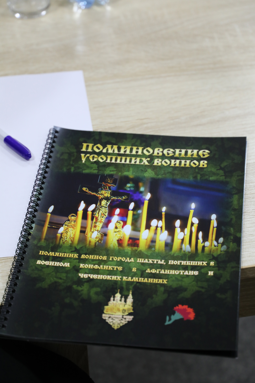 Благочинный передал для каждого прихода помянник воинов, погибших в военном конфликте в Афганистане и военных кампаниях в Чечне, подготовленный Шахтинской епархией совместно с председателем общественной организации «Союз солдатских матерей» Т. Тельновой. Имена шахтинских героев тех времен будут поминаться на молитве вместе с воинами, отдавшими жизнь в ходе Специальной военной операции.