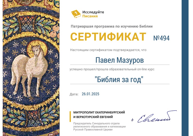 По программе «Литургические чтения, Страстная седмица» окончили курс и получили сертификаты 3 человека. Курс «Библия за год» прошёл 1 человек. И курс «Псалтирь в 13 шагах» 1 человек.